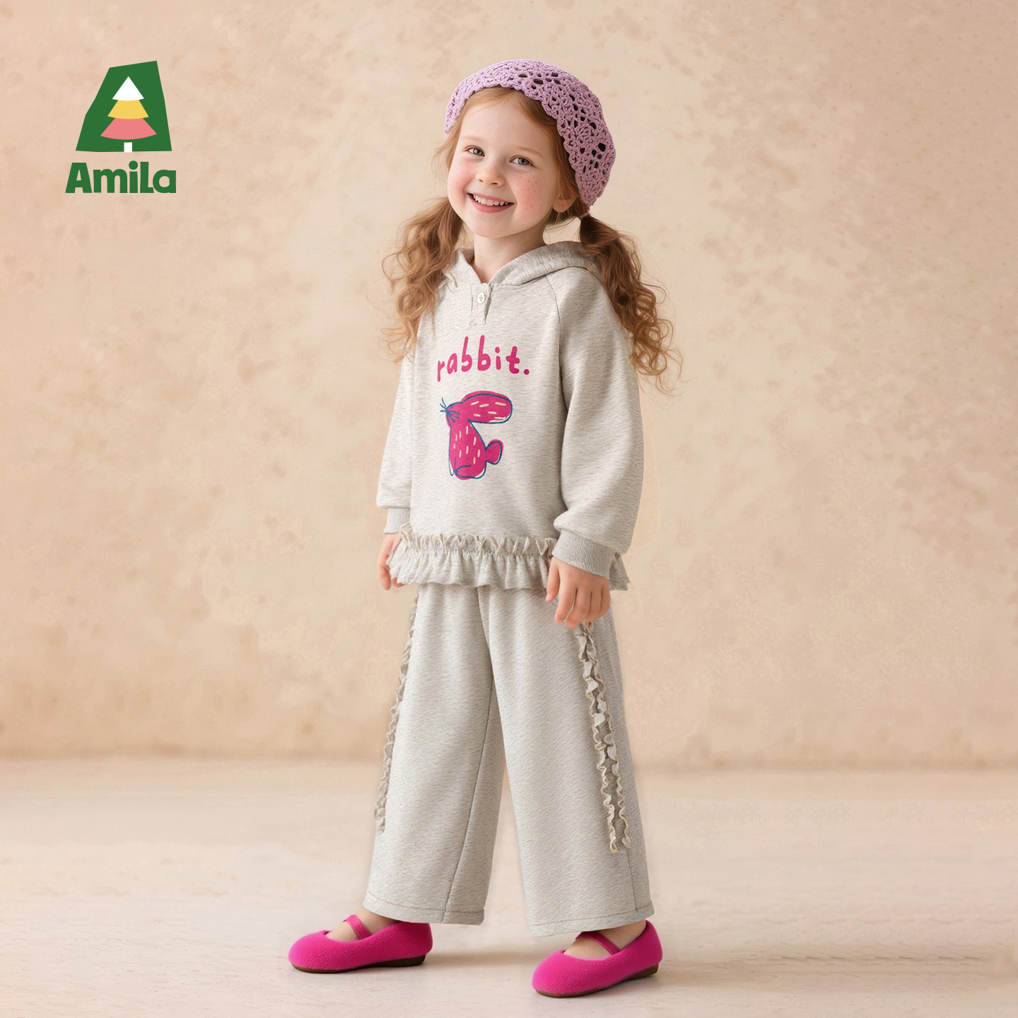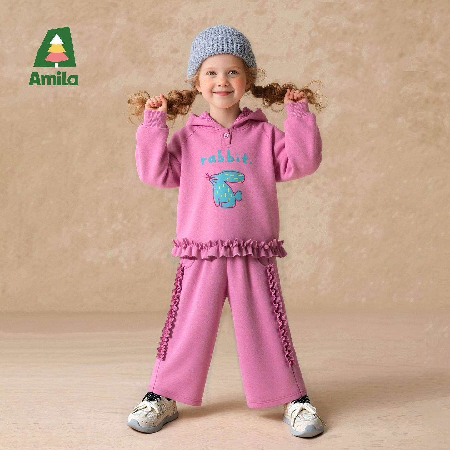 加厚长裤 Amila女童套装 加绒卫衣外套儿童冬装 冬季 两件套 2025新款