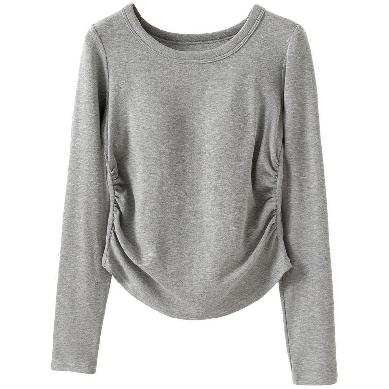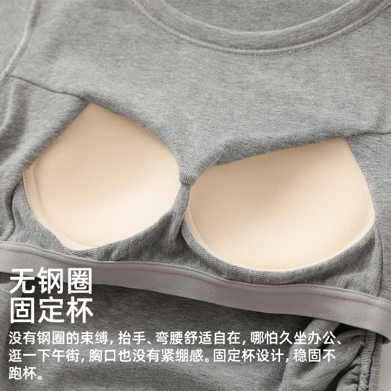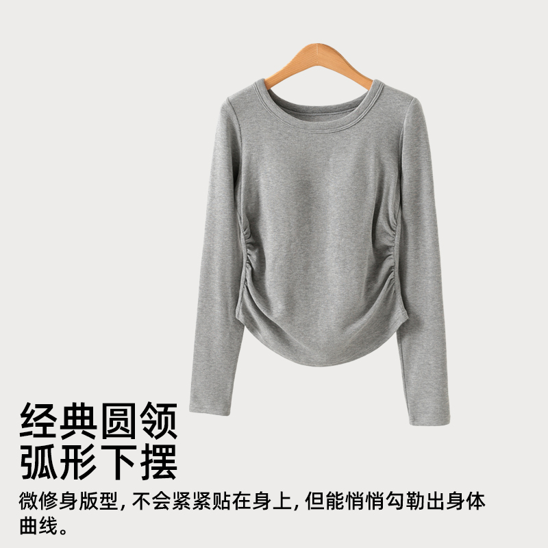 圆领自发热保暖打底衫 文胸一体式 新款 T恤女士带胸垫2025秋季 长袖