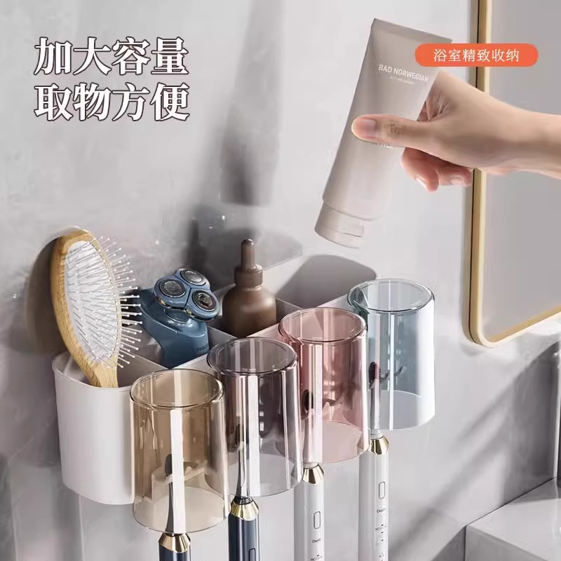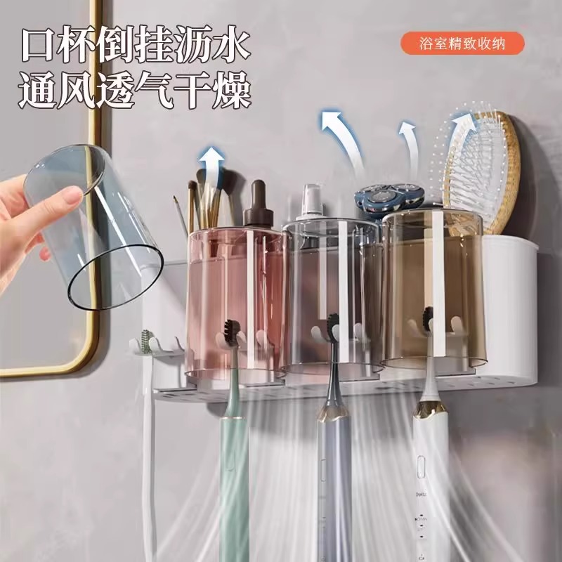 牙刷牙杯壁挂置物架洗漱台电动牙刷套装 免打孔卫生间牙具座牙膏