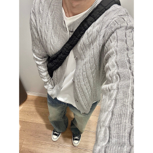 毛衣男潮牌保暖针织外套 cleanfit休闲解构加厚开衫 JHYQ秋冬季 美式