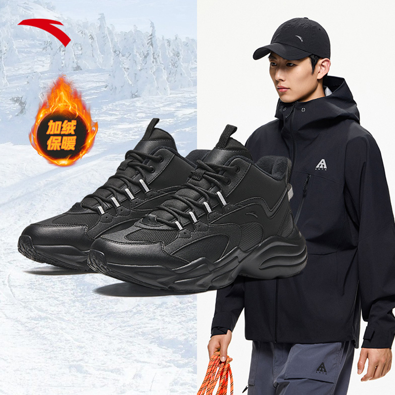 大棉鞋 防滑学生黑色运动鞋 冬季 加厚加绒保暖户外鞋 男 新款 安踏男鞋