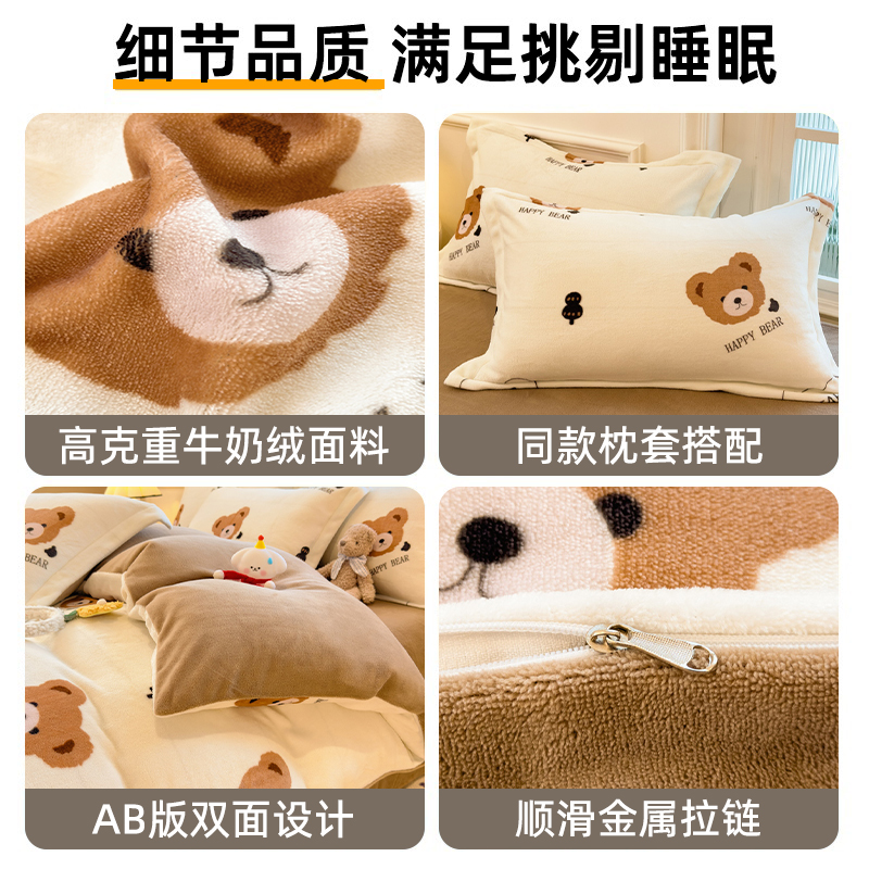 牛奶绒被套单件冬季 珊瑚绒双面加绒法兰绒被罩150x200单人四件套