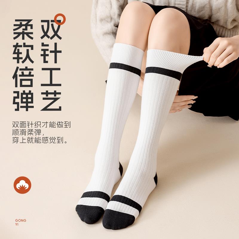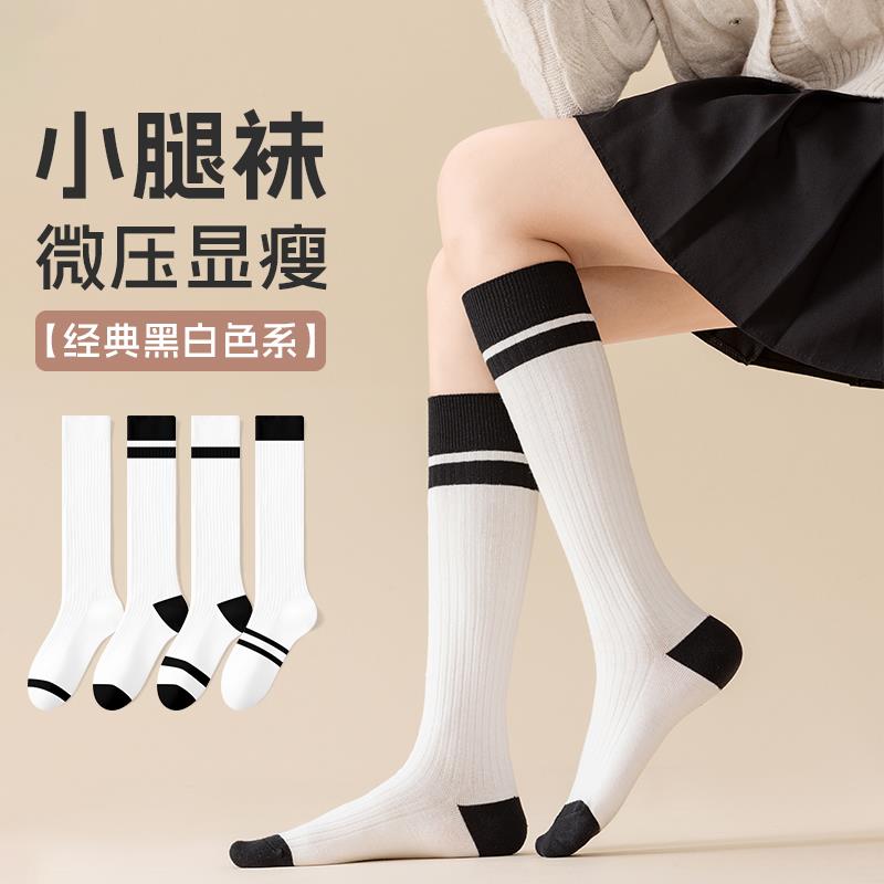 小腿袜子女春秋季 JK潮 过膝袜纯棉中筒袜微压显瘦无骨长筒长袜夏季