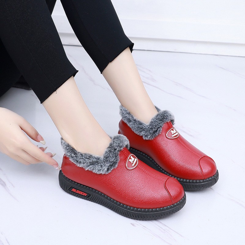 加绒加厚保暖一脚蹬软底防滑妈妈鞋 新款 雪地靴 女2024冬季 棉鞋