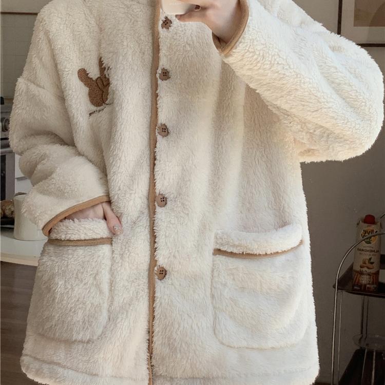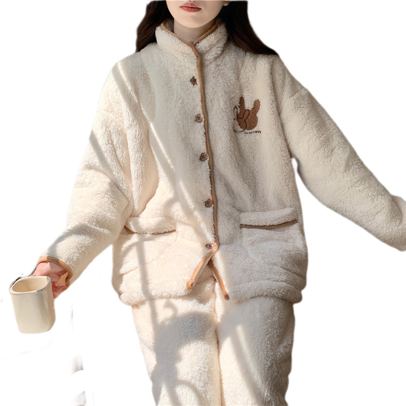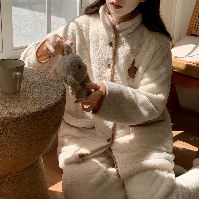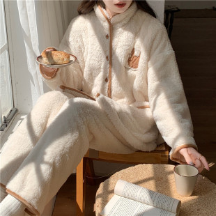 新款 珊瑚绒睡衣女款 套装 加绒加厚保暖长袖 女士家居服可外穿 秋冬季