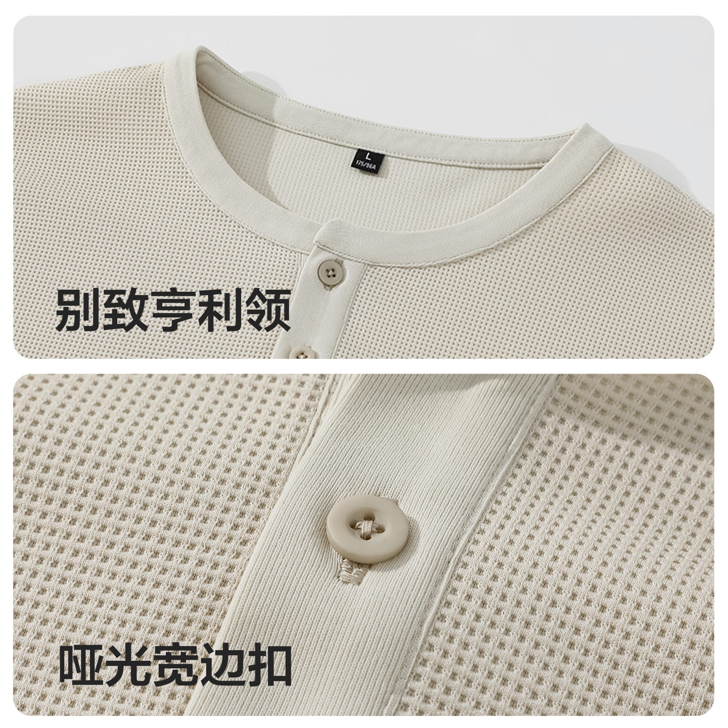 内搭打底衫 红豆酷丝格亨利领长袖 T恤男华夫格2025年春秋款