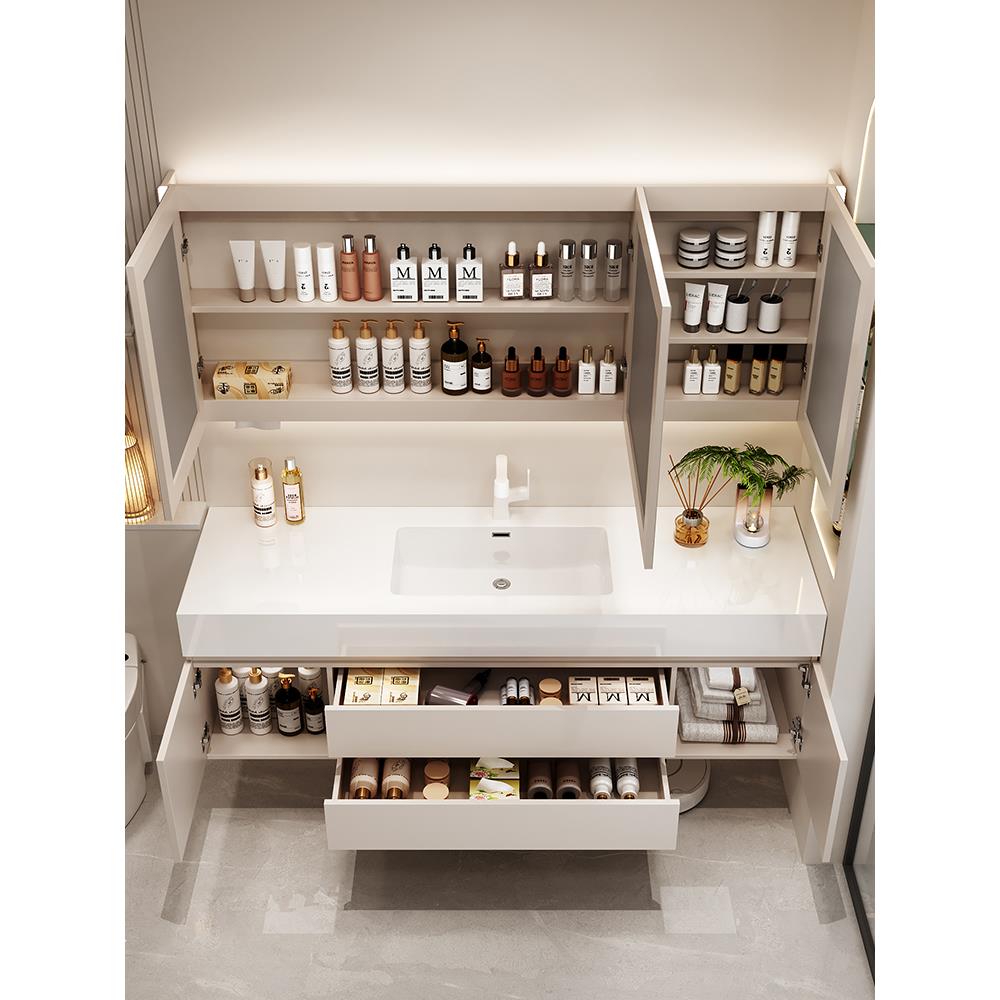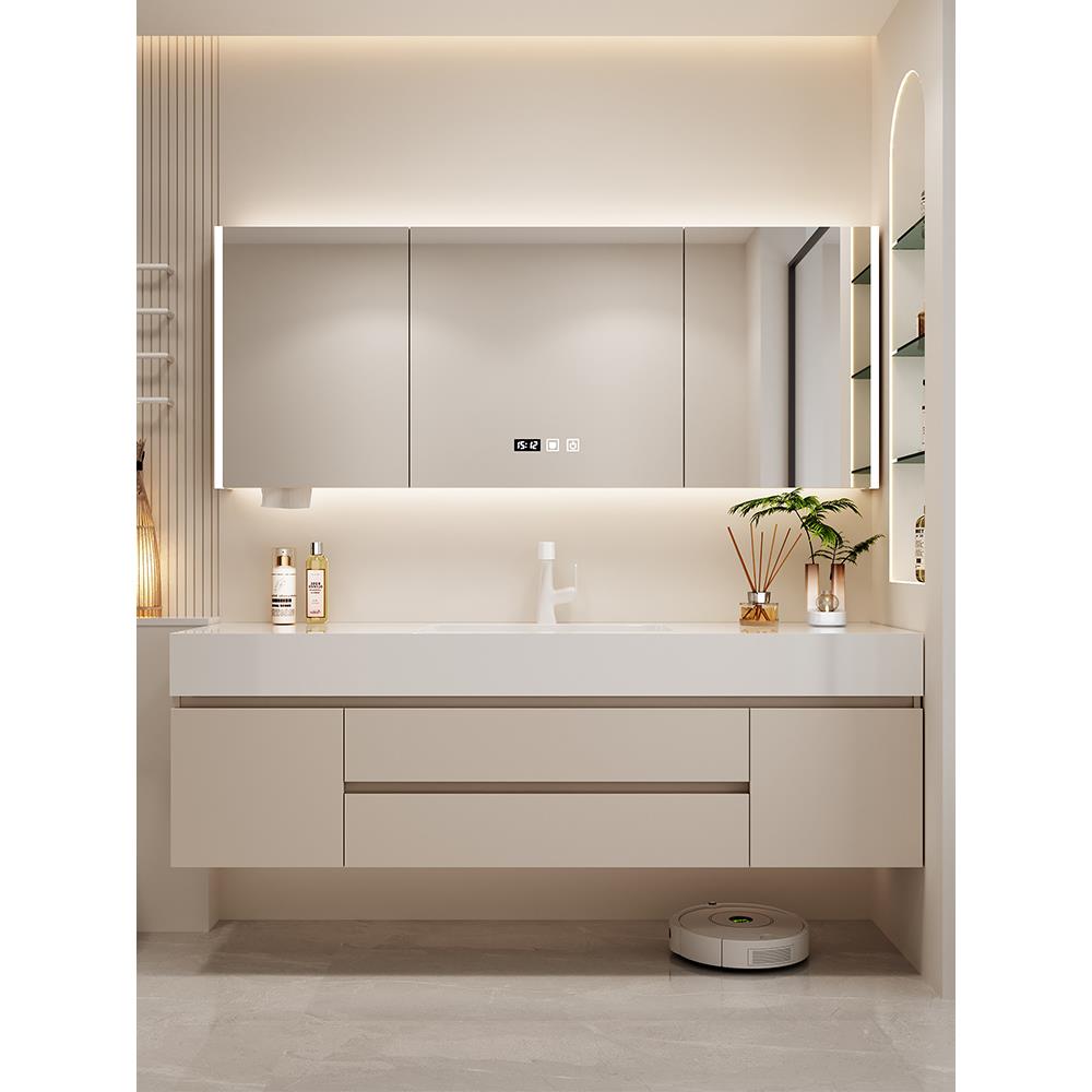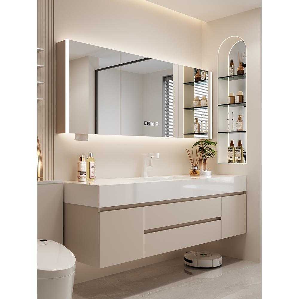 卫生间2025新款 浴室柜组合岩板陶瓷无缝一体洗手脸池台盆洗漱定制