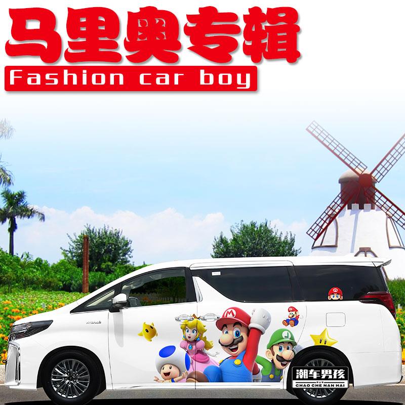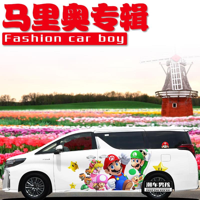 定制 马力欧全家福库巴汽车身两侧贴纸个性 埃尔法 超级马里奥车贴