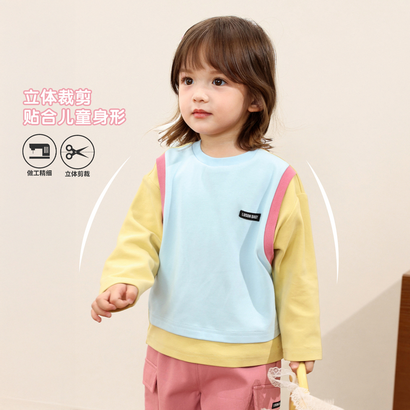 t恤秋2025年新款 小O爸婴童女宝宝假两件长袖 婴儿洋气上衣 双面绒