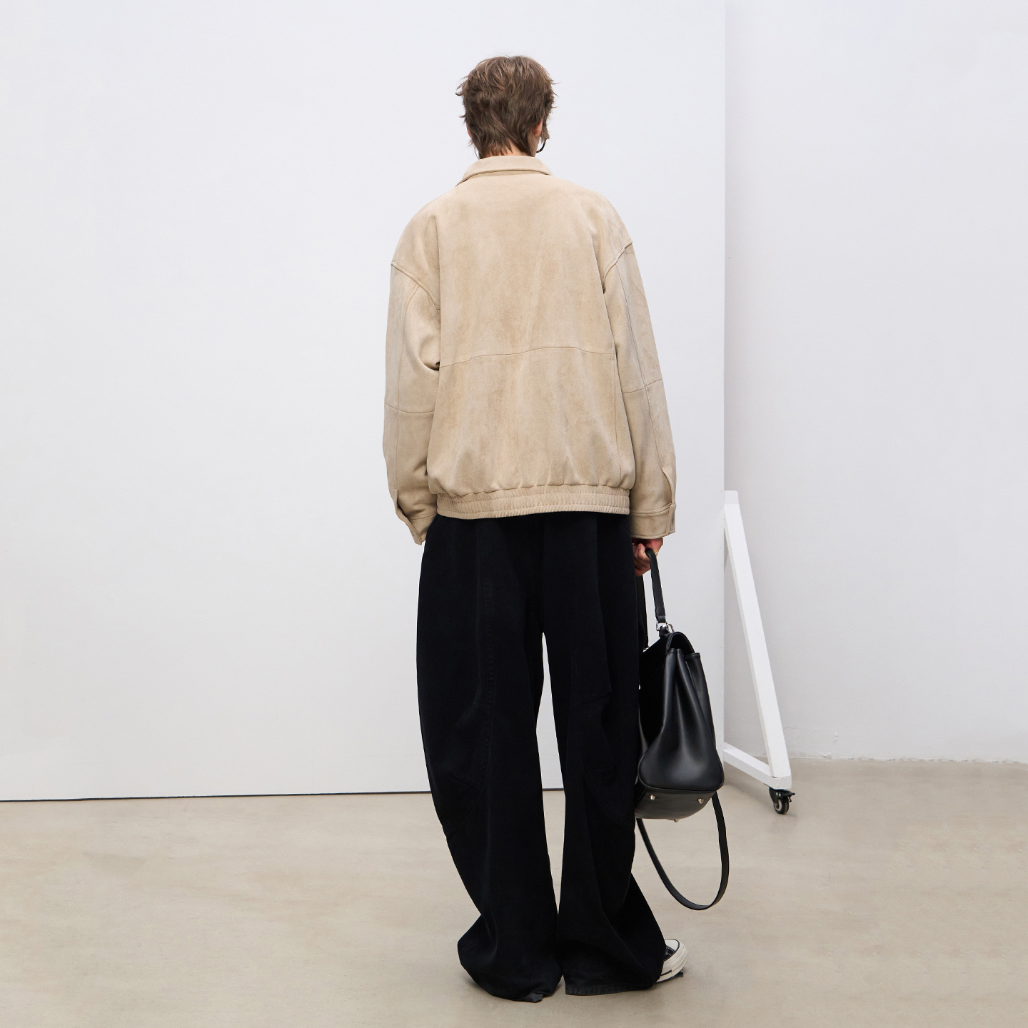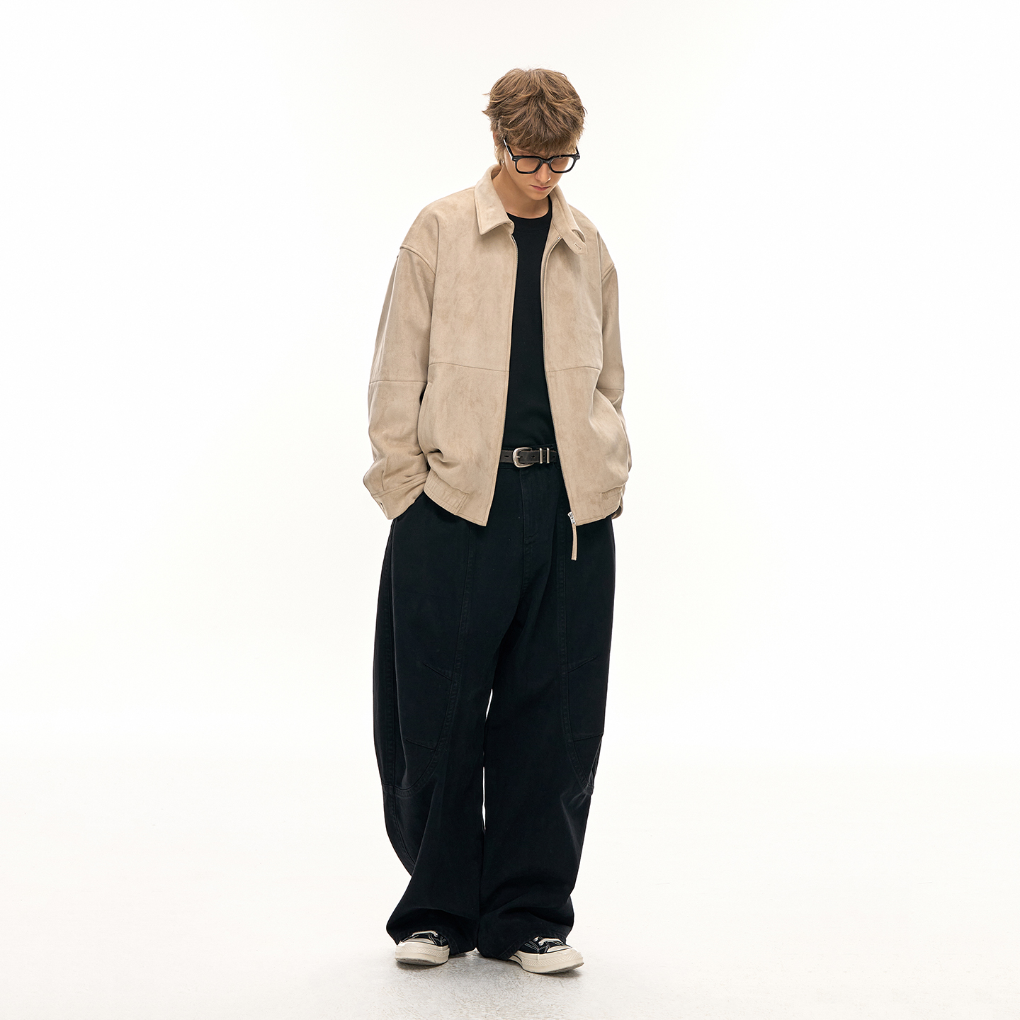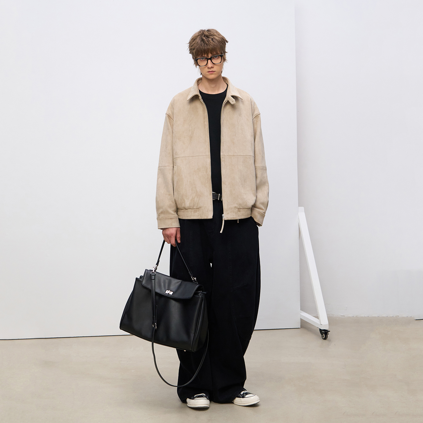 斜纹翻领工装 秋季 外套胖子宽松加肥加大肌理感夹克 男装 黑劲大码