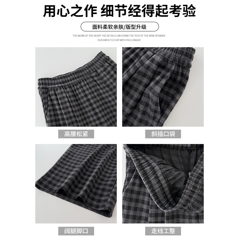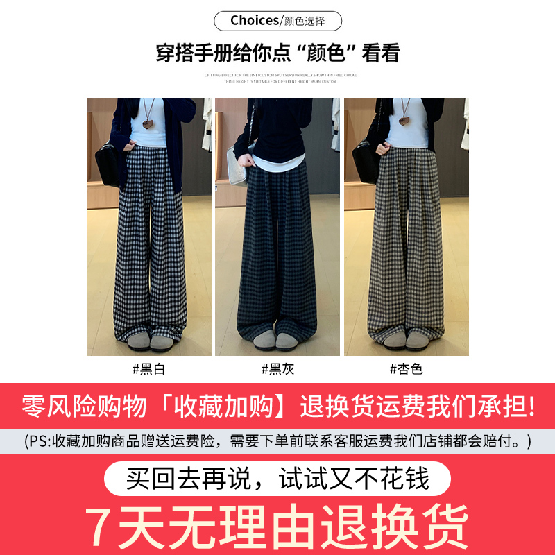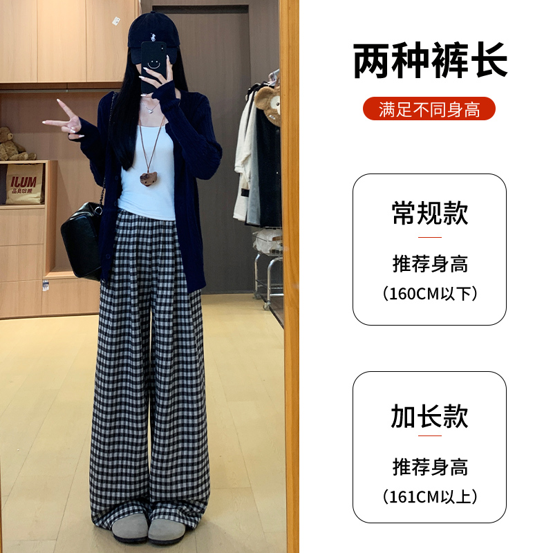 高腰休闲显瘦格纹小个子直筒阔腿裤 2025新款 子女春秋季 黑色格子裤