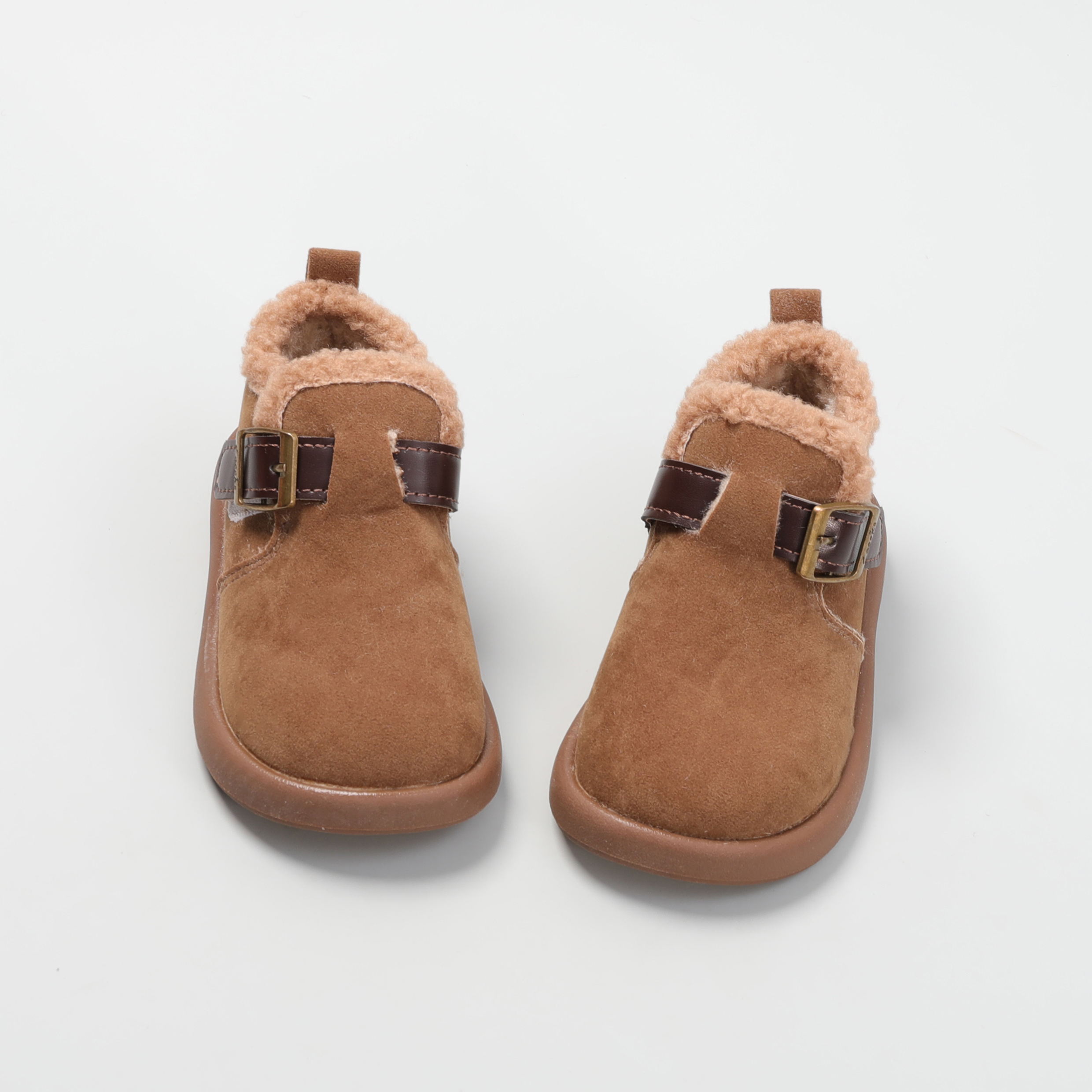 男童皮面防水小孩居家室内女童宝宝加绒保暖棉拖鞋 儿童棉鞋 秋冬季