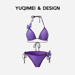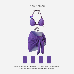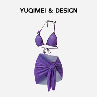 YUQIMEI新款 紫色纯欲比基尼三件套性感显白高级感温泉分体泳衣女