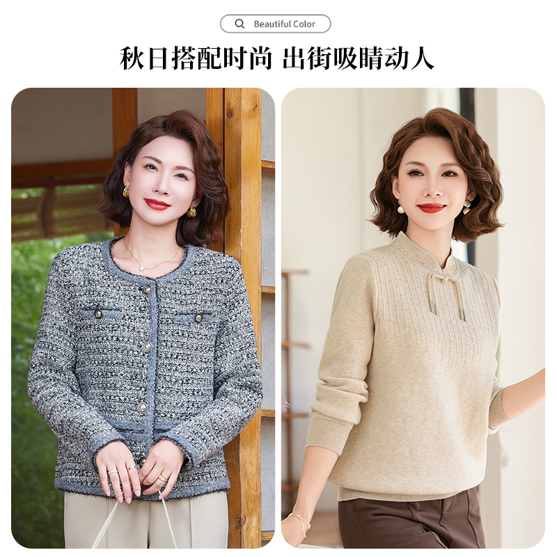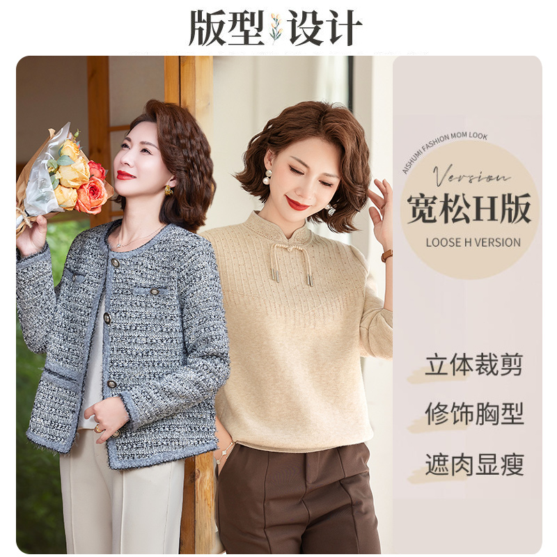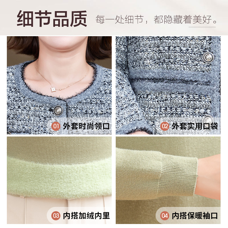 秋芙罗妈妈装 小香风夹克洋气外套加绒加厚保暖毛衣女 2025秋冬新款