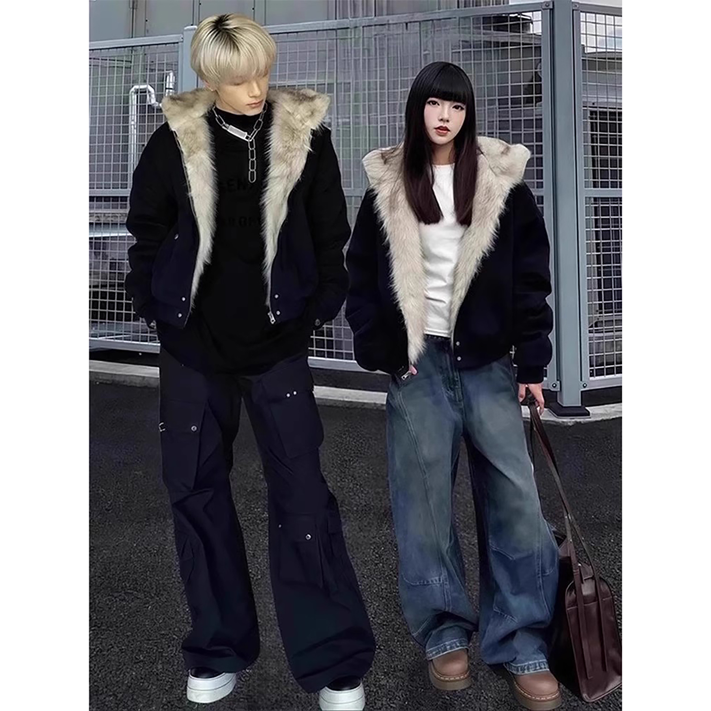 2025秋冬加厚宽松连帽夹克男潮流夹棉外套闲工装 运动户外保暖棉服