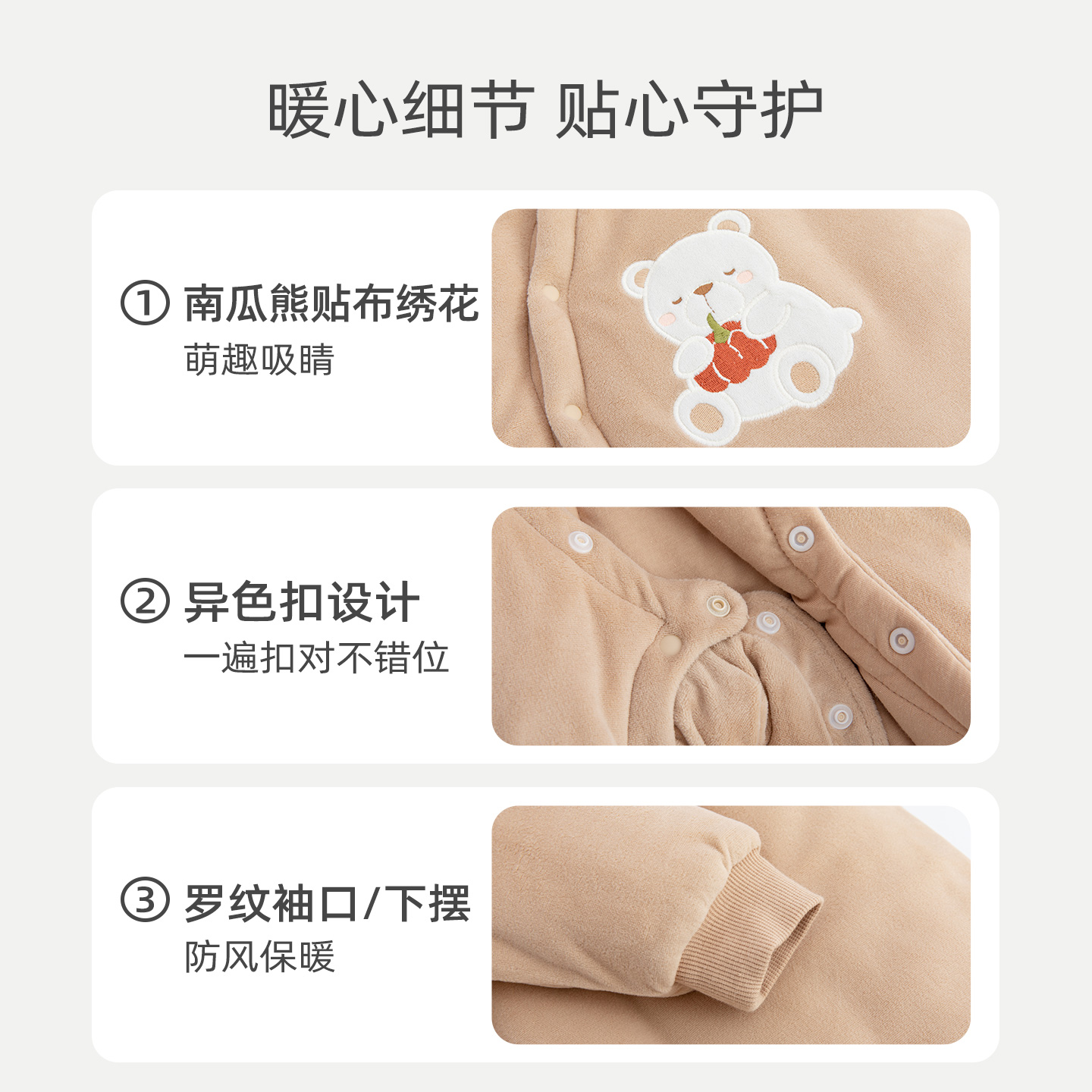 夹棉家居爬服柔软保暖a类 麦拉贝拉婴儿护肚连体衣冬季 宝宝绒