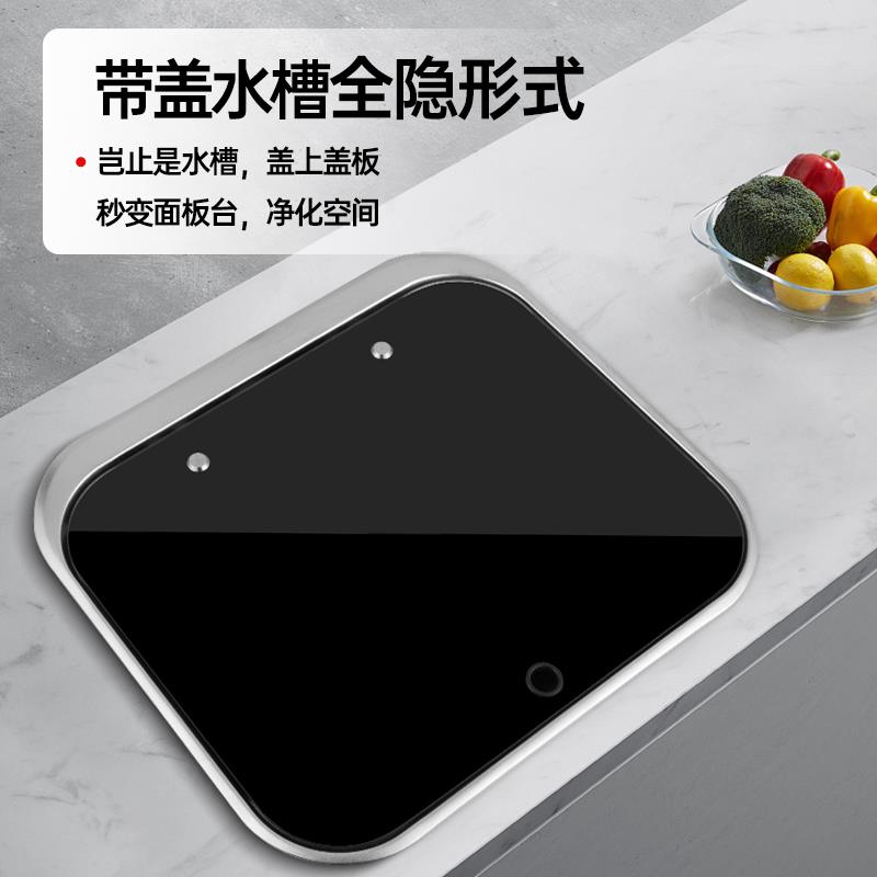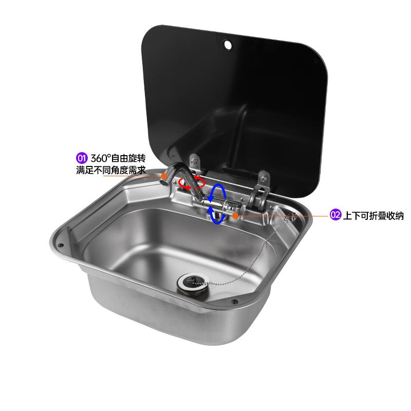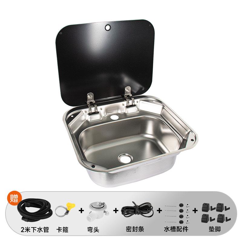 房车水槽带盖厨房洗手盆洗菜槽折叠式 翻盖单槽不锈钢方形水盆改装