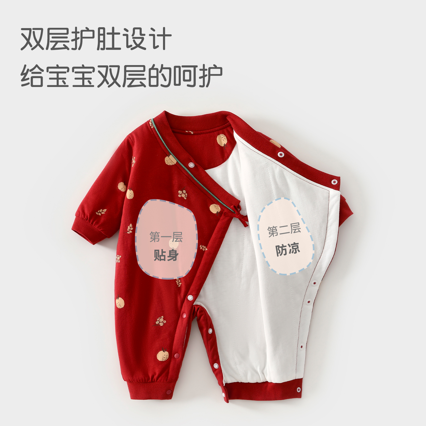 新生婴儿秋冬夹棉连体衣纯棉婴幼儿满月初生宝宝百天喜庆保暖哈衣