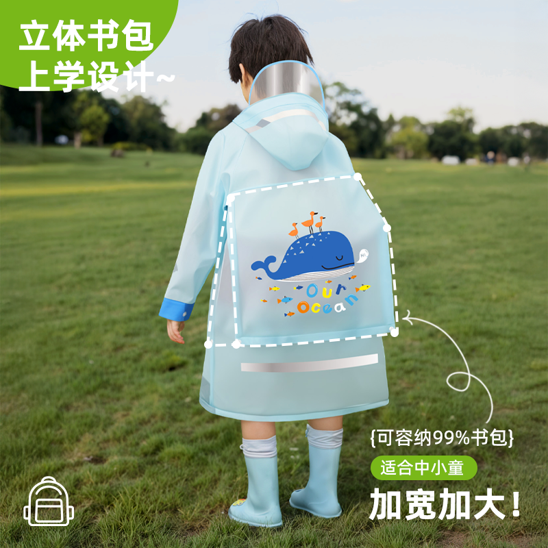 儿童雨衣男童女孩全身防水新款 幼儿园小学生上学专用带书包位雨披