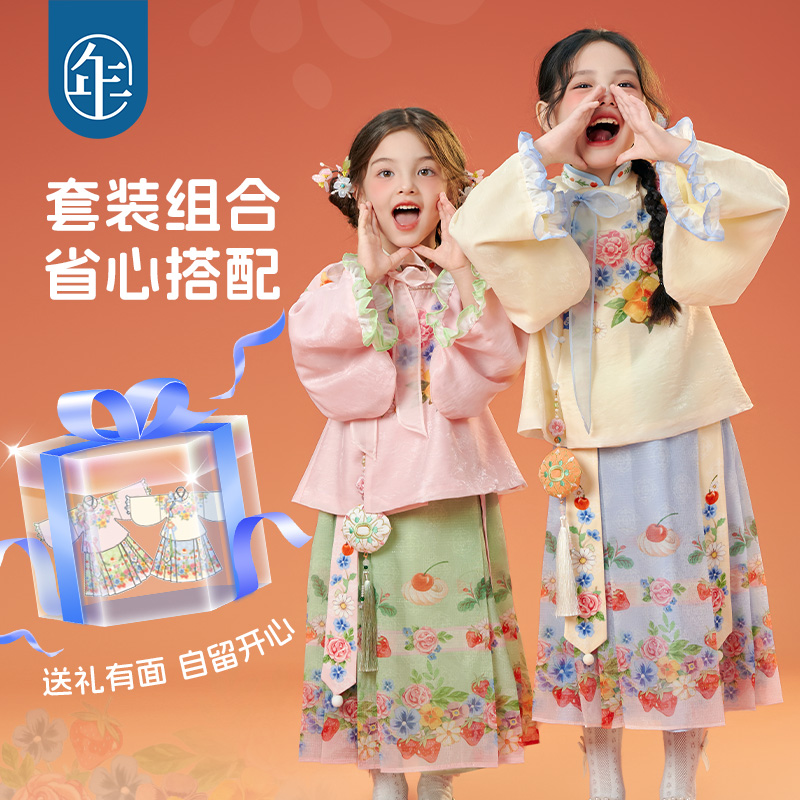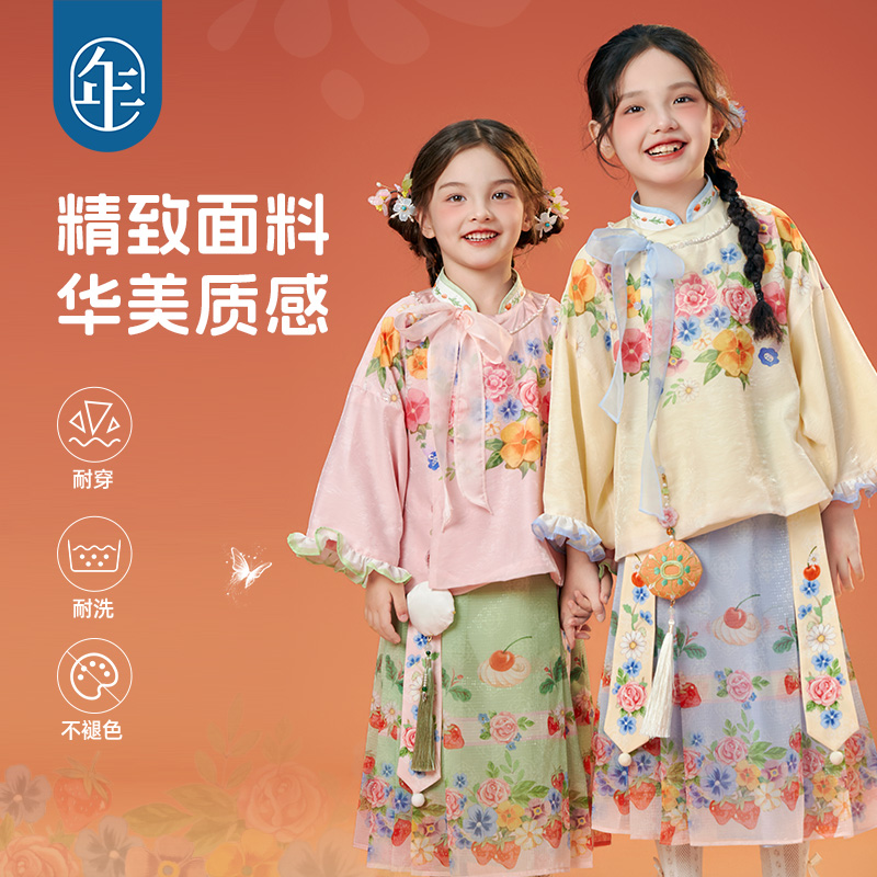 儿童明制汉服中式 年衣童装 新款 女童秋季 中秋节礼服上衣 马面裙套装