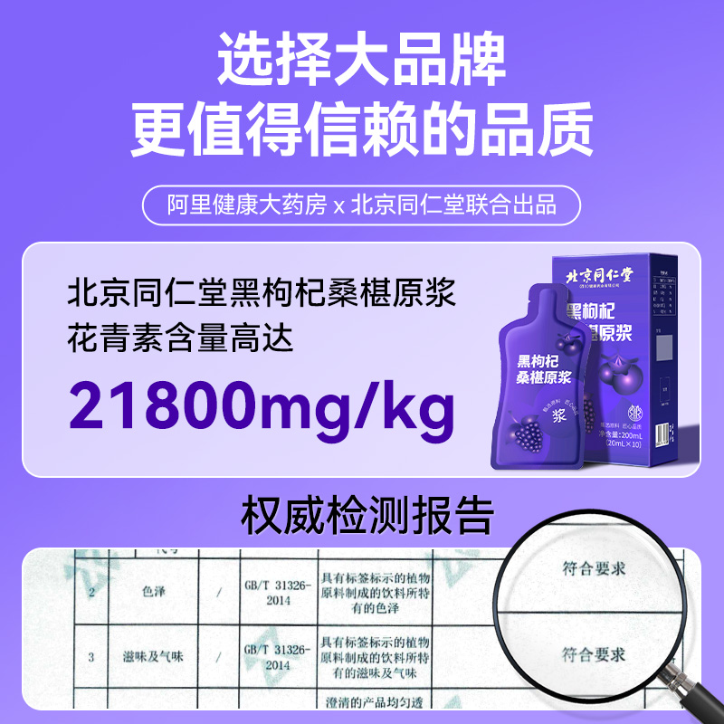 北京同仁堂桑葚黑枸杞原浆nfc宁夏鲜枸杞花青素汁饮料桑椹果汁