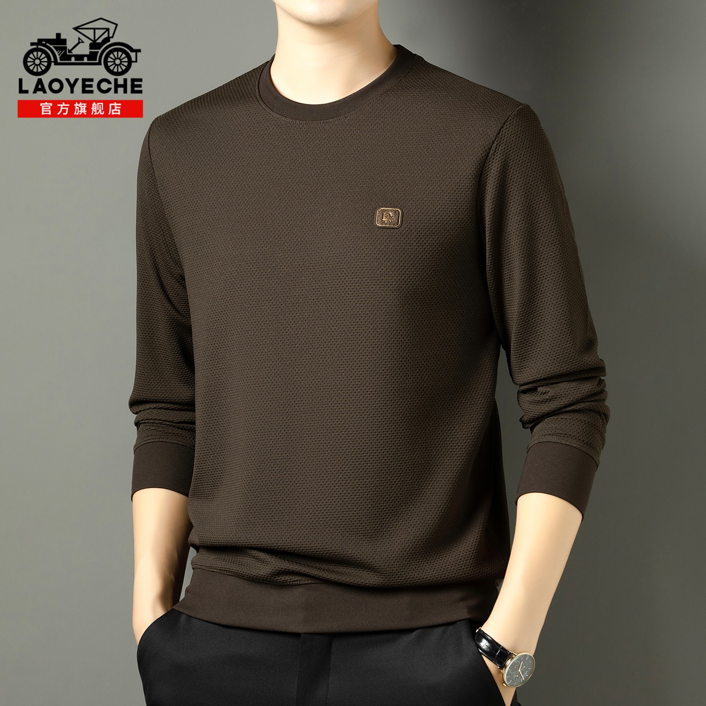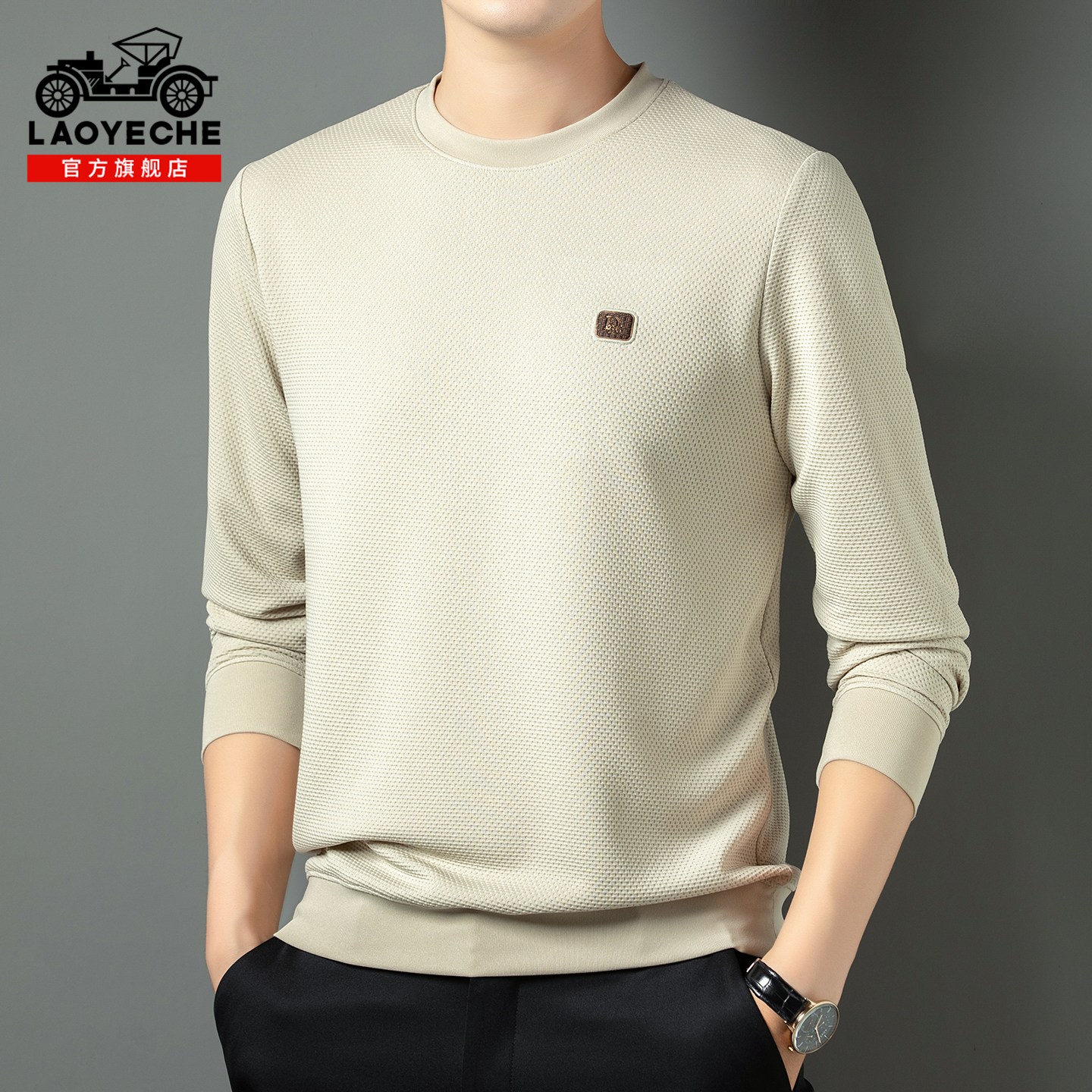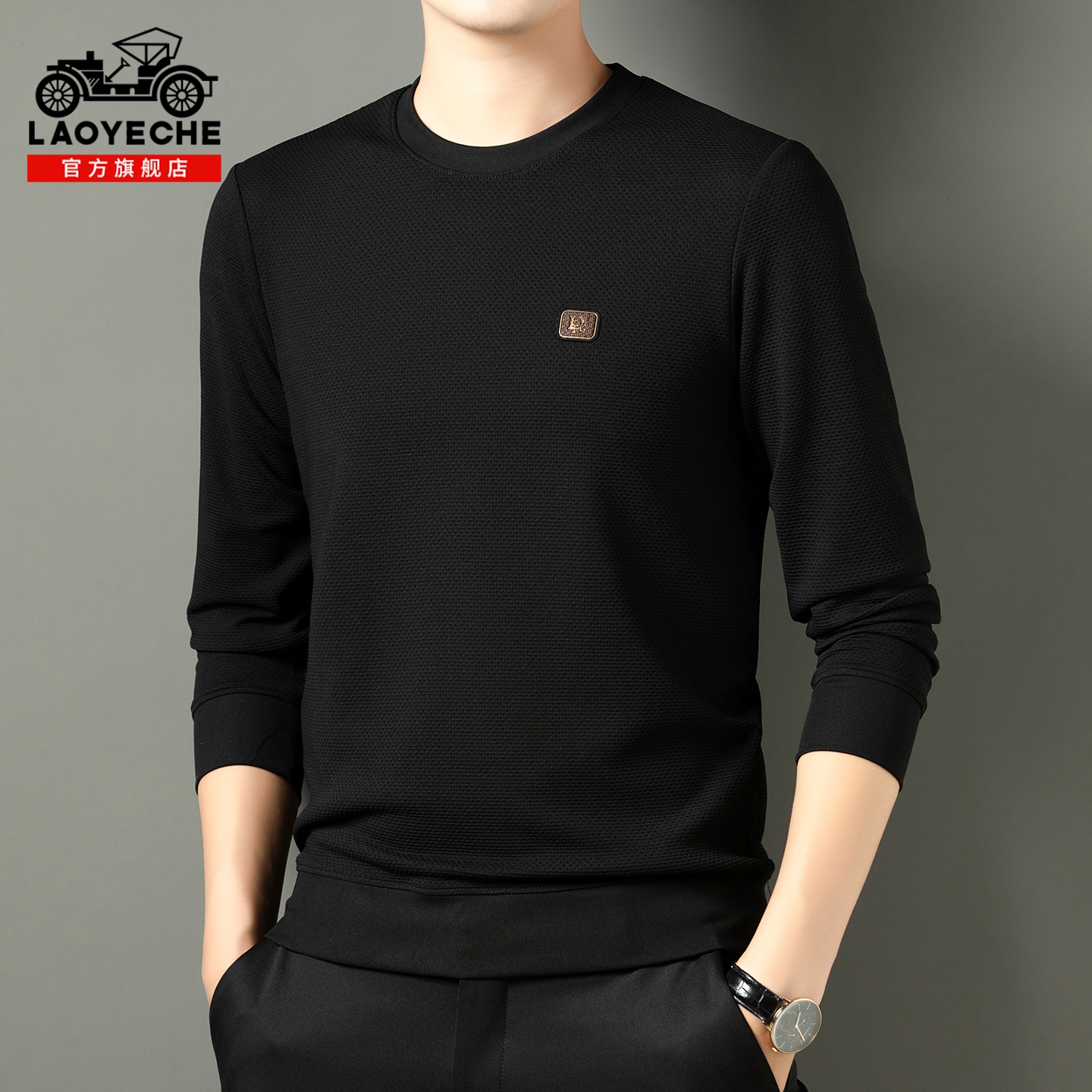 2025年秋季 t恤男装 新款 本命年长袖 红色打底衫 老爷车圆领卫衣男士