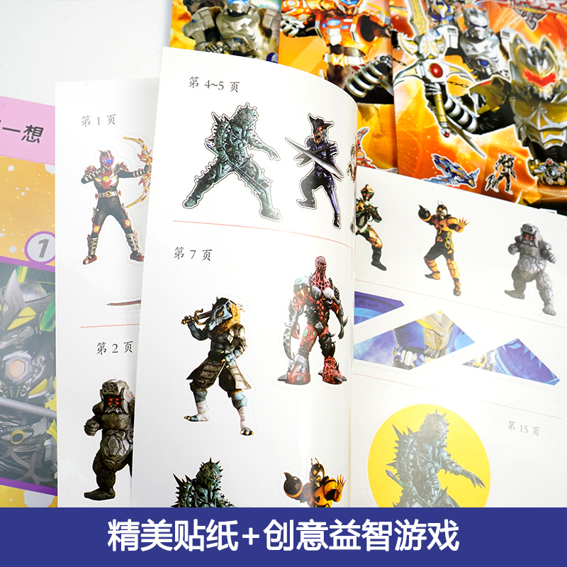 铠甲勇士趣味贴纸游戏书超级激战光影战士决胜之战胜利曙光新蒙氏儿童趣味益智粘贴画图画捉迷藏搜寻王找不同男孩子喜欢 贴纸书