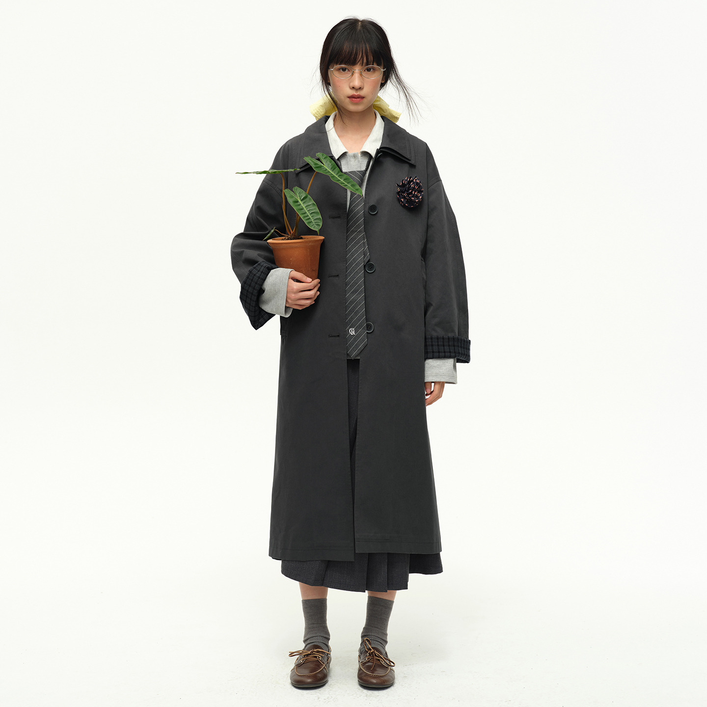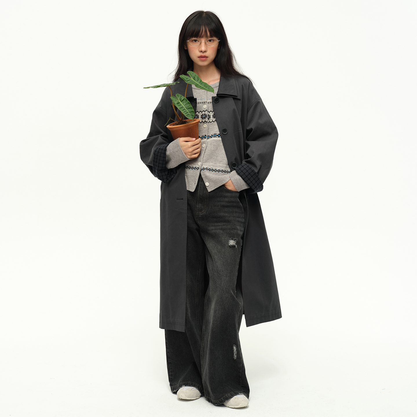 韩版 长款 呢子加厚风衣外套 2025春秋季 V37黑色高级感毛呢大衣男款