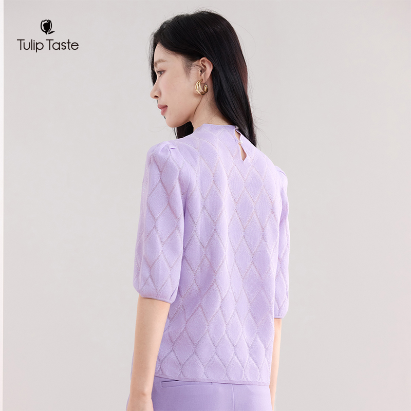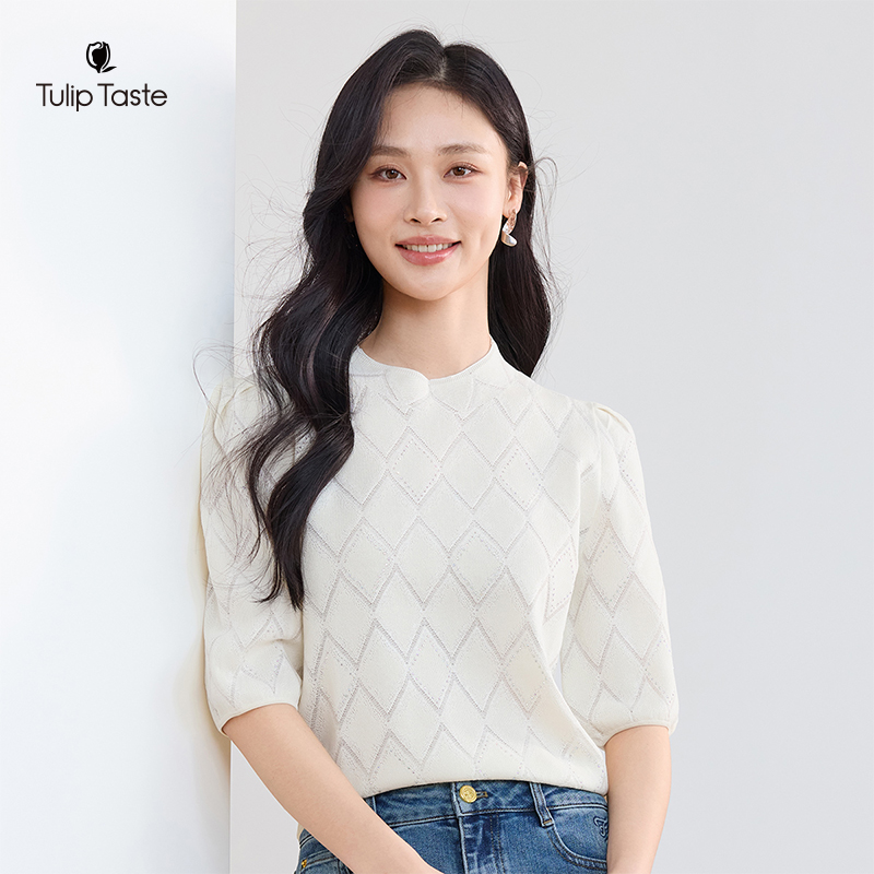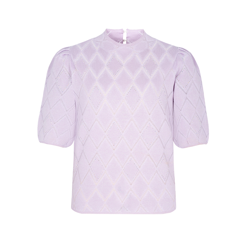 中袖 郁香菲圆领针织衫 菱形烫钻套头打底衫 时尚 上衣 女气质通勤秋季