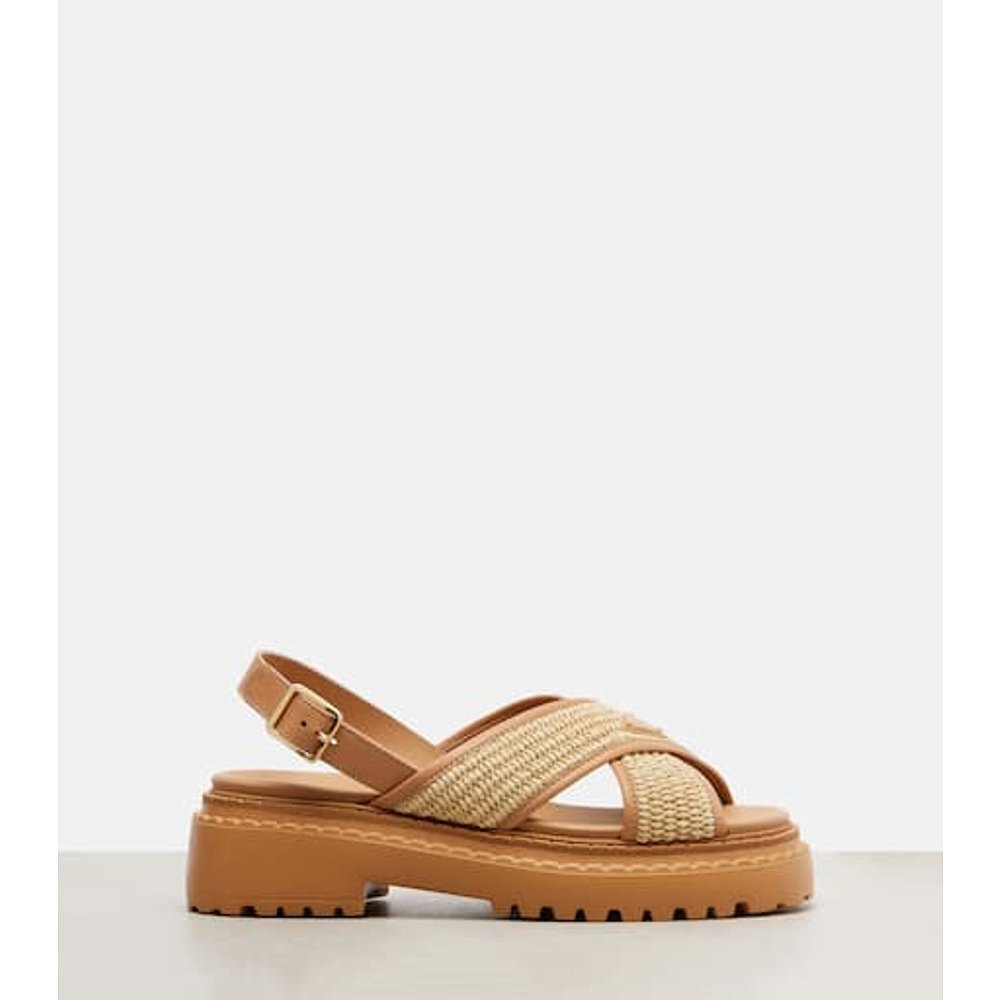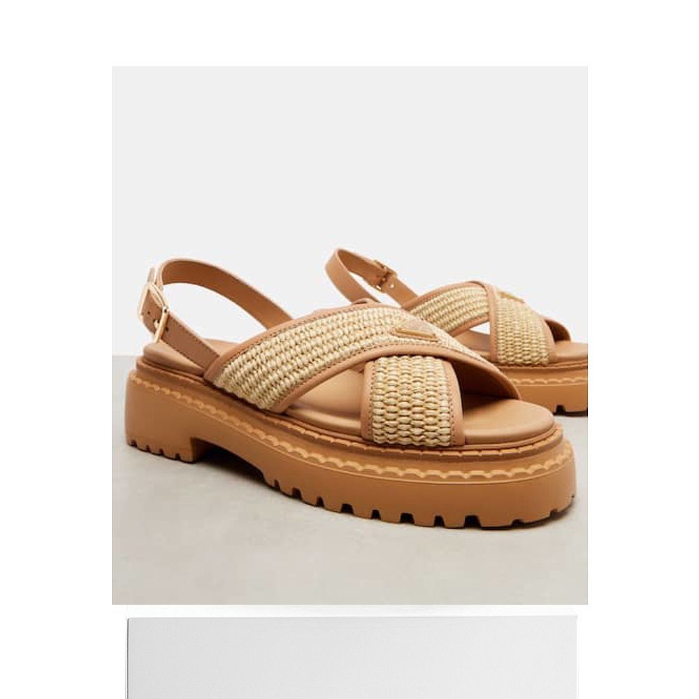 徽标钩编皮质防水台凉鞋 1h可退 女士 普拉达 香港直邮Prada