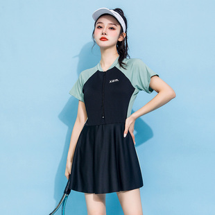 保守ins风学生胖妹妹遮肚显瘦温泉游泳装 大码 泳衣女160斤连体裙式