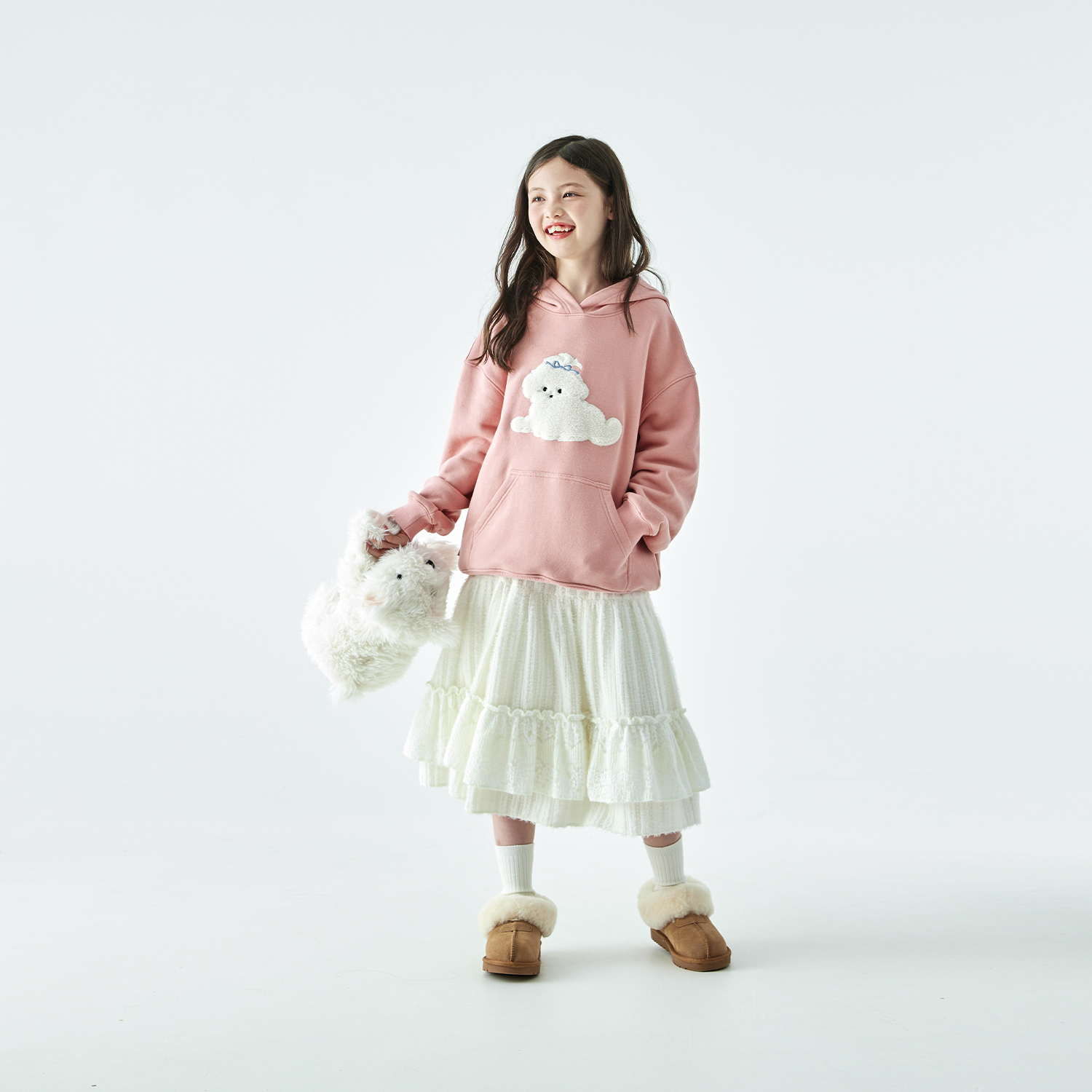 棵初25年秋冬季 亲子中大女童绣花连帽卫衣胸前小狗贴布绣上衣 新款