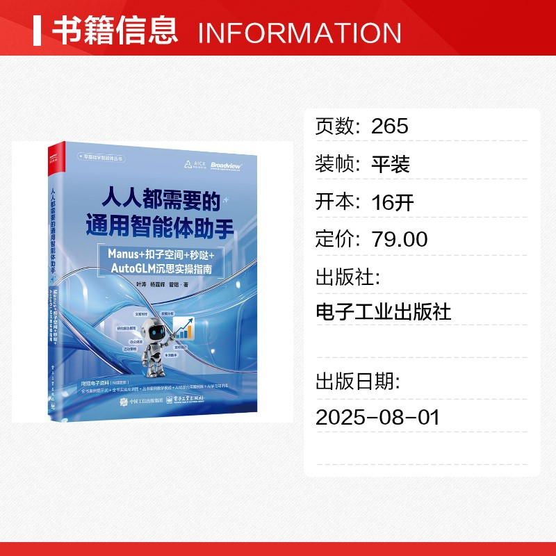扣子空间 秒哒 社新华文轩正版 通用智能体助手 书籍 电子工业出版 Manus 人工智能教程书籍 人人都需要 AutoGLM沉思实操指南