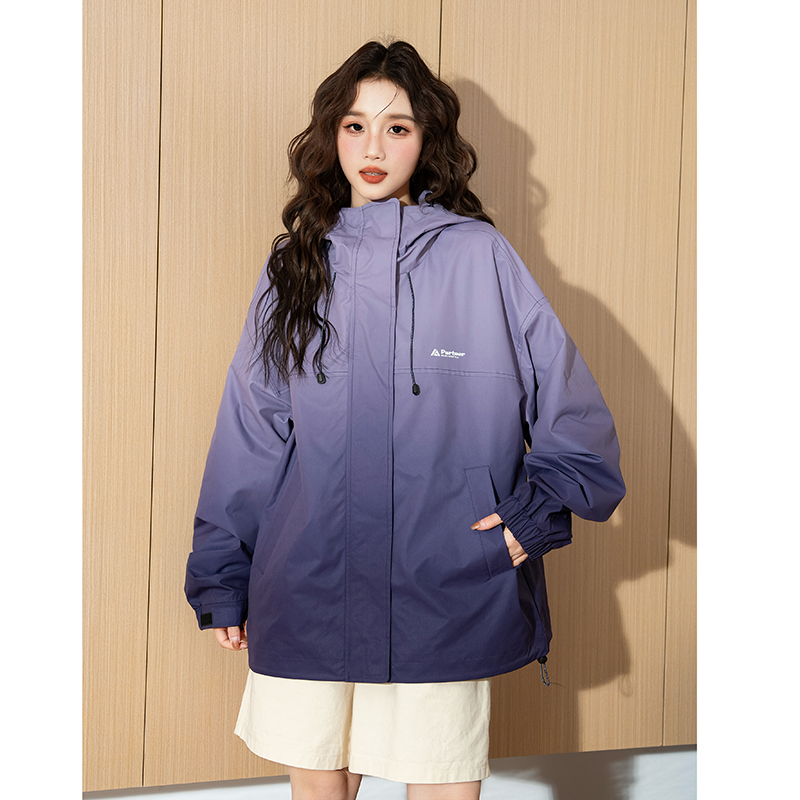 新款 唐狮2025年秋季 渐变连帽外套女冲锋少年上衣休闲运动 防水