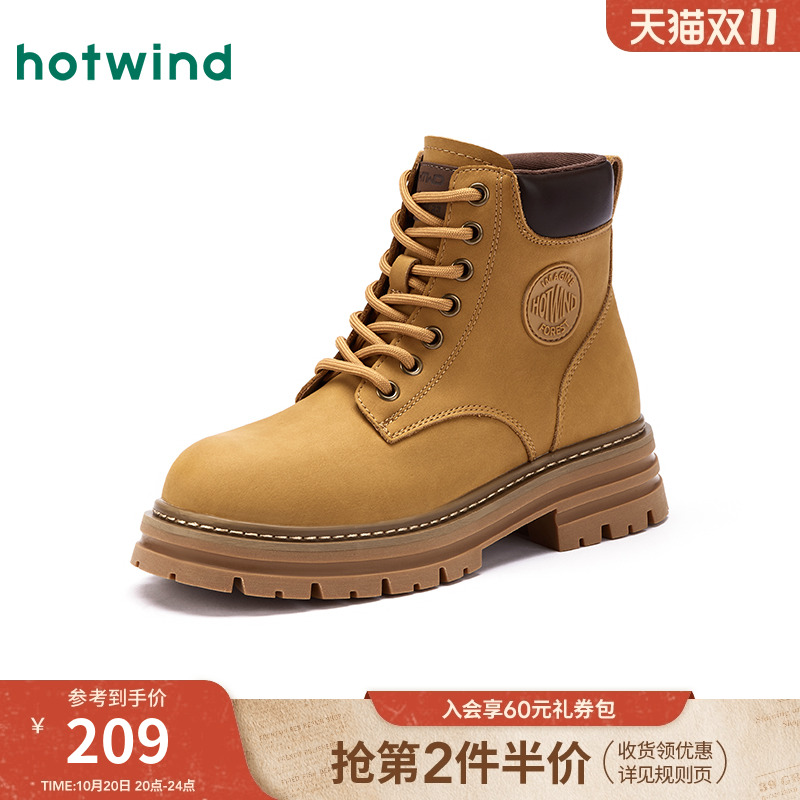 户外厚底大黄靴百搭马丁靴女鞋 热风复古工装 新款 2025年冬季 靴女款
