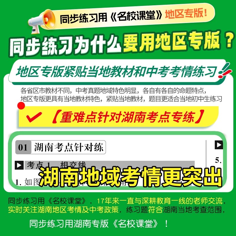 2025秋名校课堂湖南专版 湘教初中同步练习册基础题举一反三一课一练 七八九年级上下册语文数学英语物理化学政史历史地理生物人教版