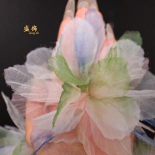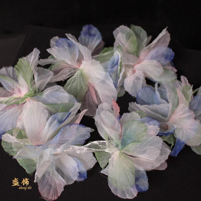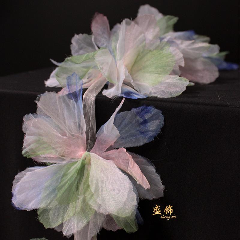 布料辅料 饰服装 蓝绿立体欧根纱渐层花朵手工diy帽子鞋 衣裙礼服装