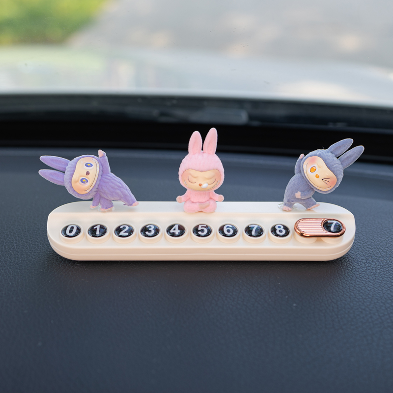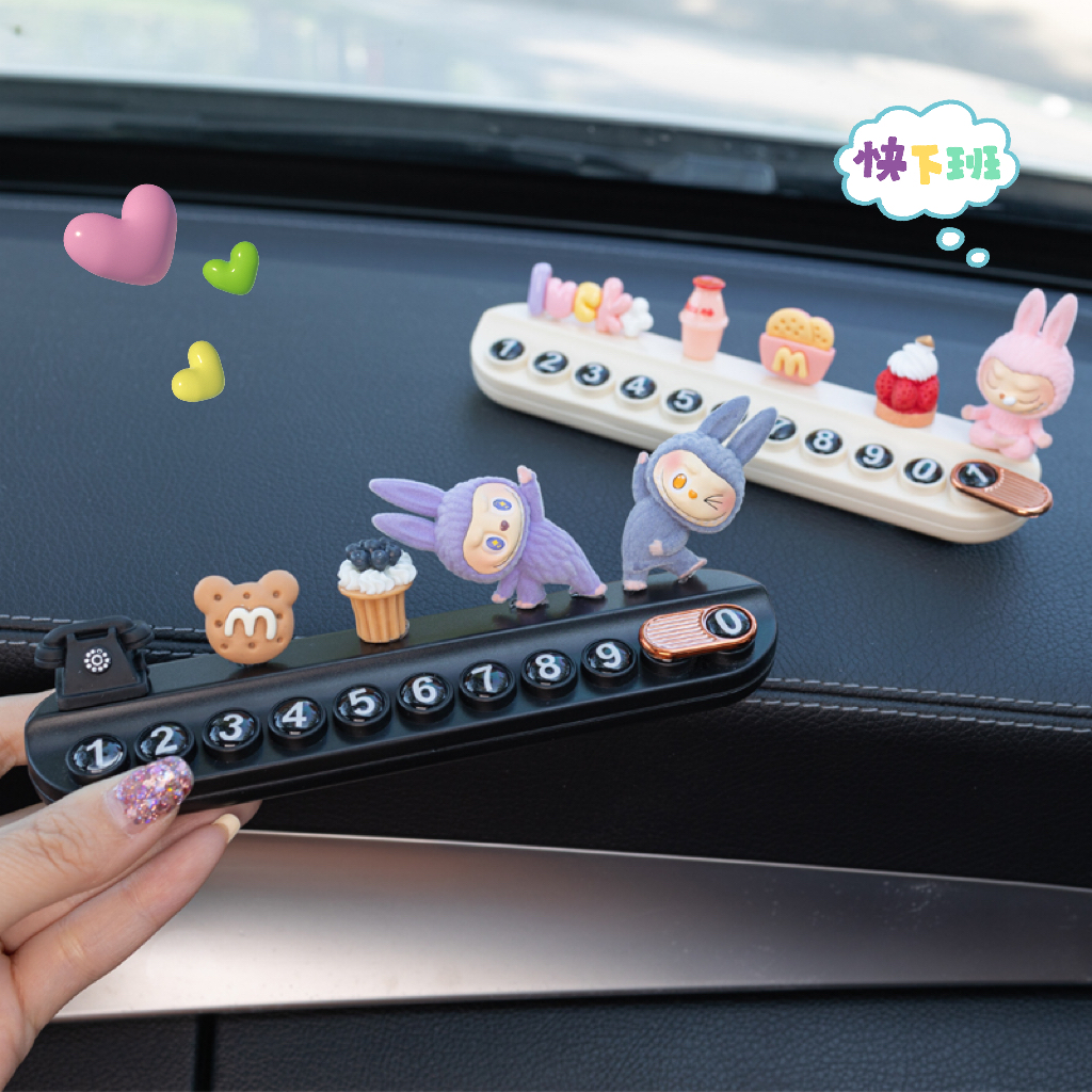 labubu汽车临时停车号码 牌车载挪车牌zimomo拉布布内饰品