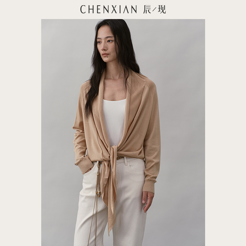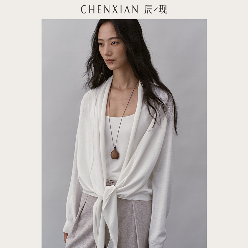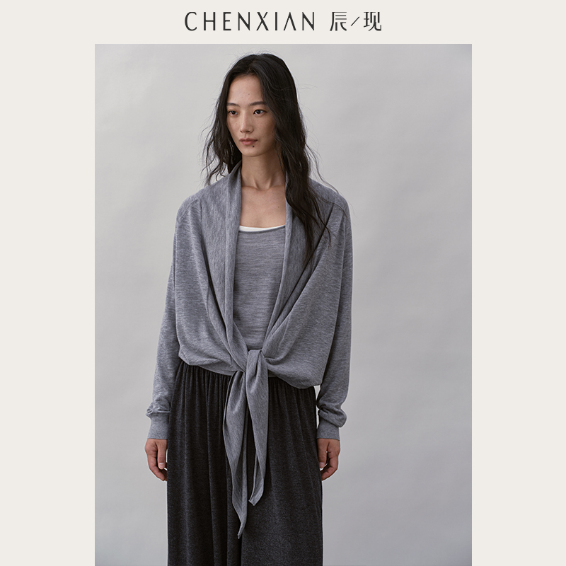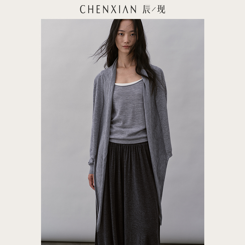 CHENXIAN辰现真丝羊绒慵懒罩衫 宽松显瘦垂感毛衣外套 披肩针织开衫