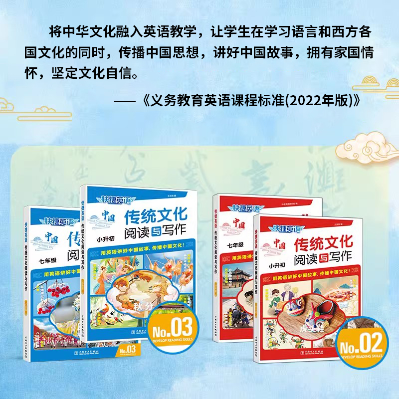 2026版 快捷英语传统文化阅读与写作3期小升初七八九年级中考时文阅读英语阅读理解完形填空组合阅读书面表达英语写作素材电力社