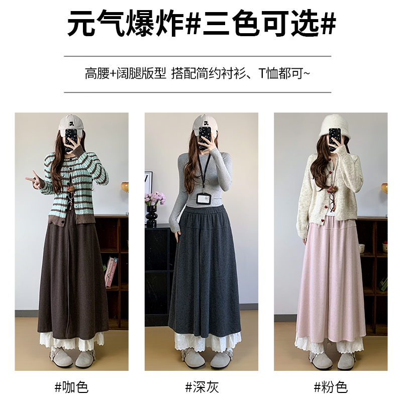 高腰宽松显瘦休闲小个子阔腿裤 2025新款 裙女春秋季 灰色蕾丝花边裤
