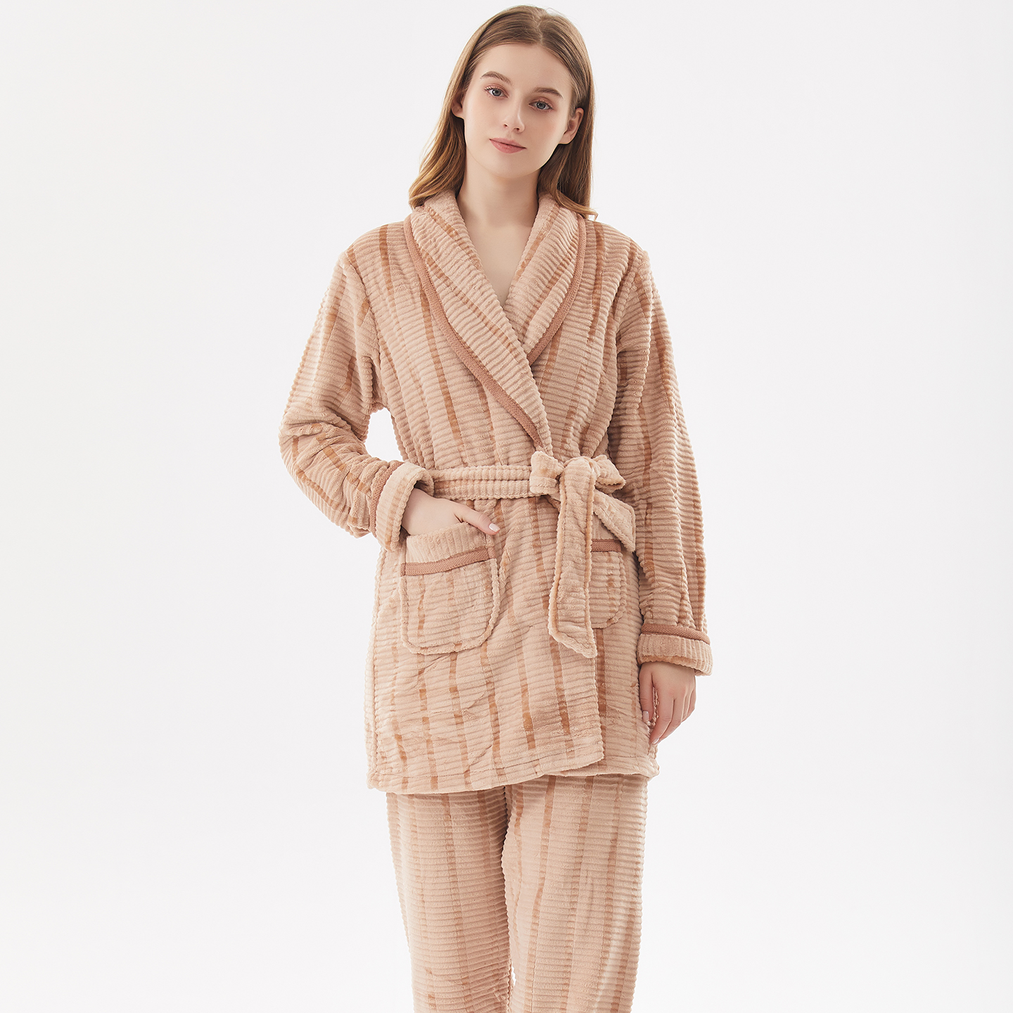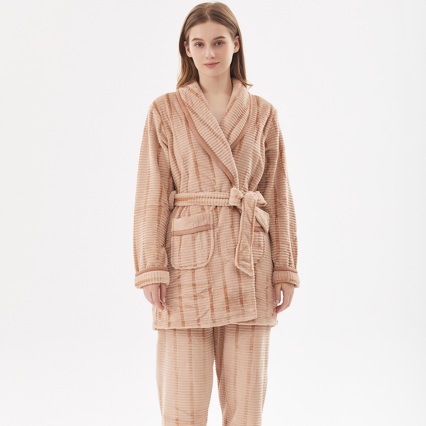 睡衣套装 宜而爽冬季 女士珊瑚绒保暖加厚加绒睡袍可外穿法兰绒长裤