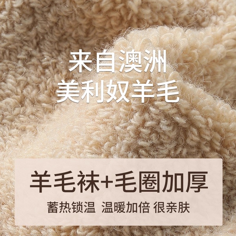 加绒加厚中筒黑色毛圈袜 男士 猫人美利奴羊毛袜子男款 秋冬2025新款