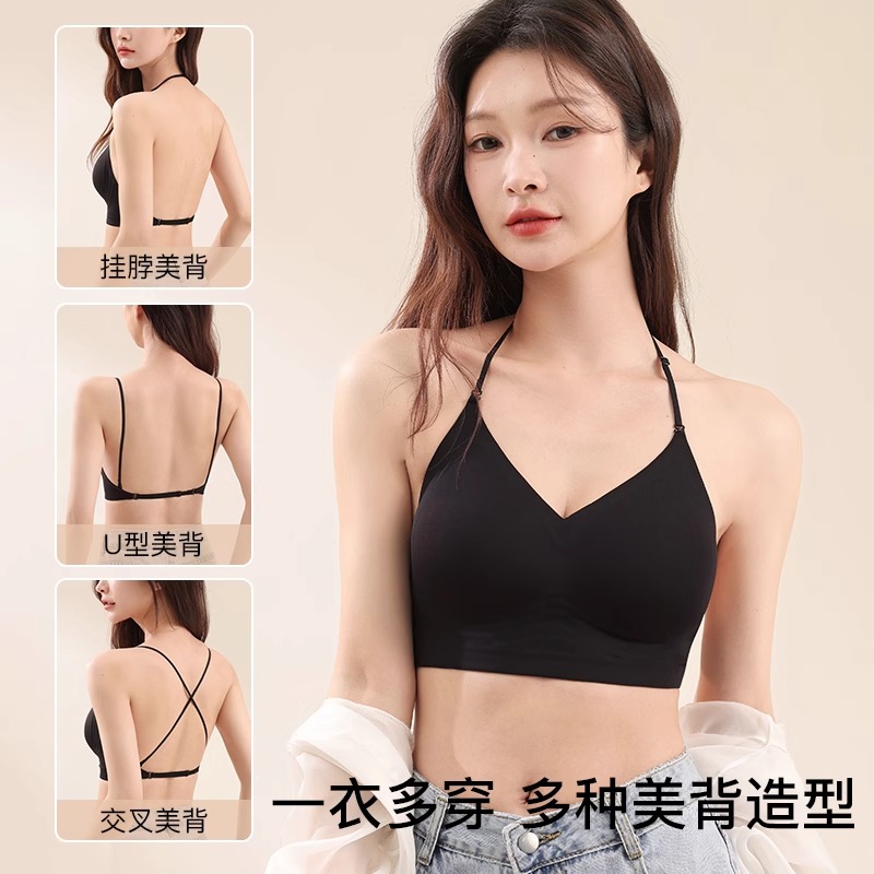 可外漏细肩带内衣女聚拢收副乳防下垂无痕美背一体抹胸防走光文胸