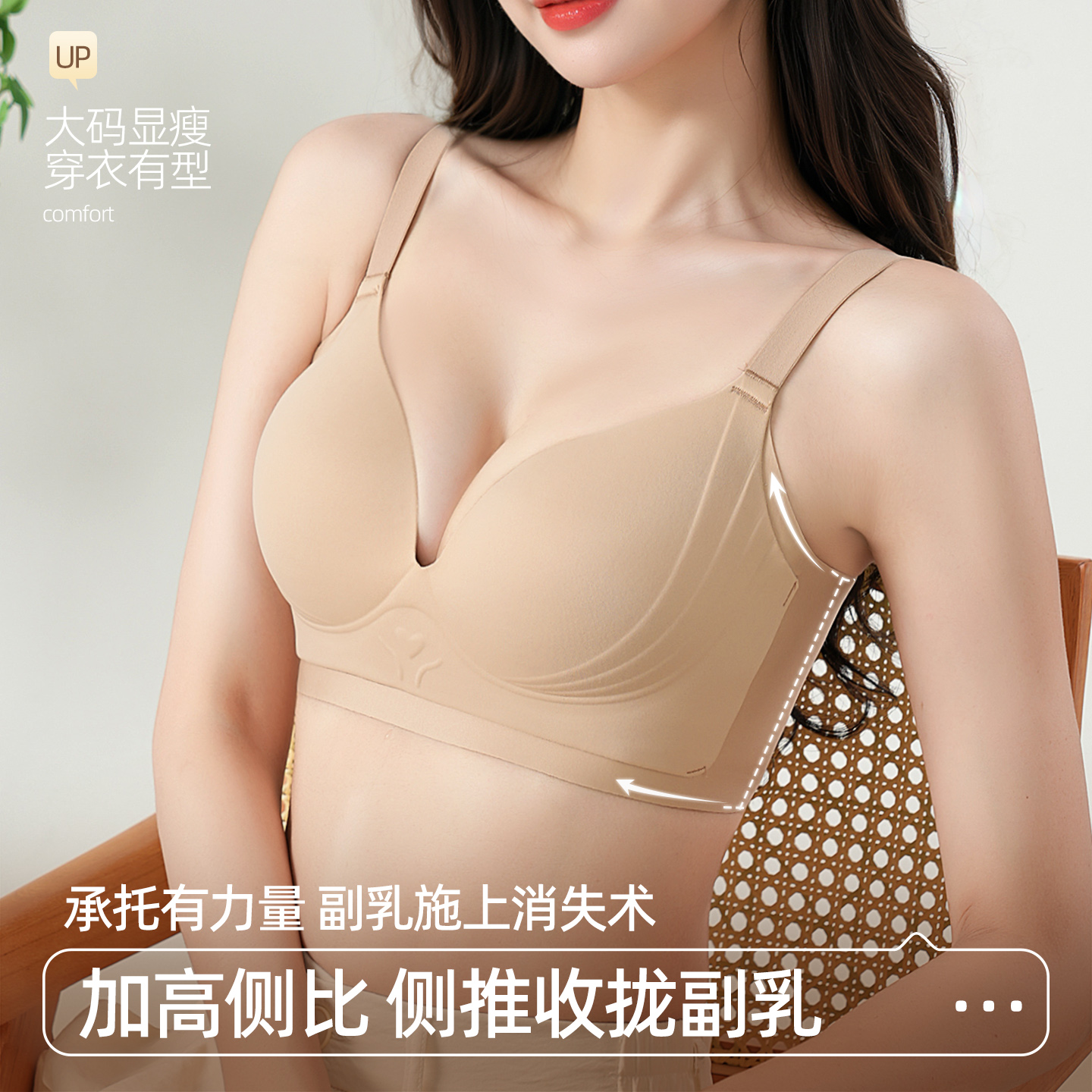 恒源祥内衣女无痕小胸聚拢收副乳果冻条防下垂乳胶薄杯美背文胸罩