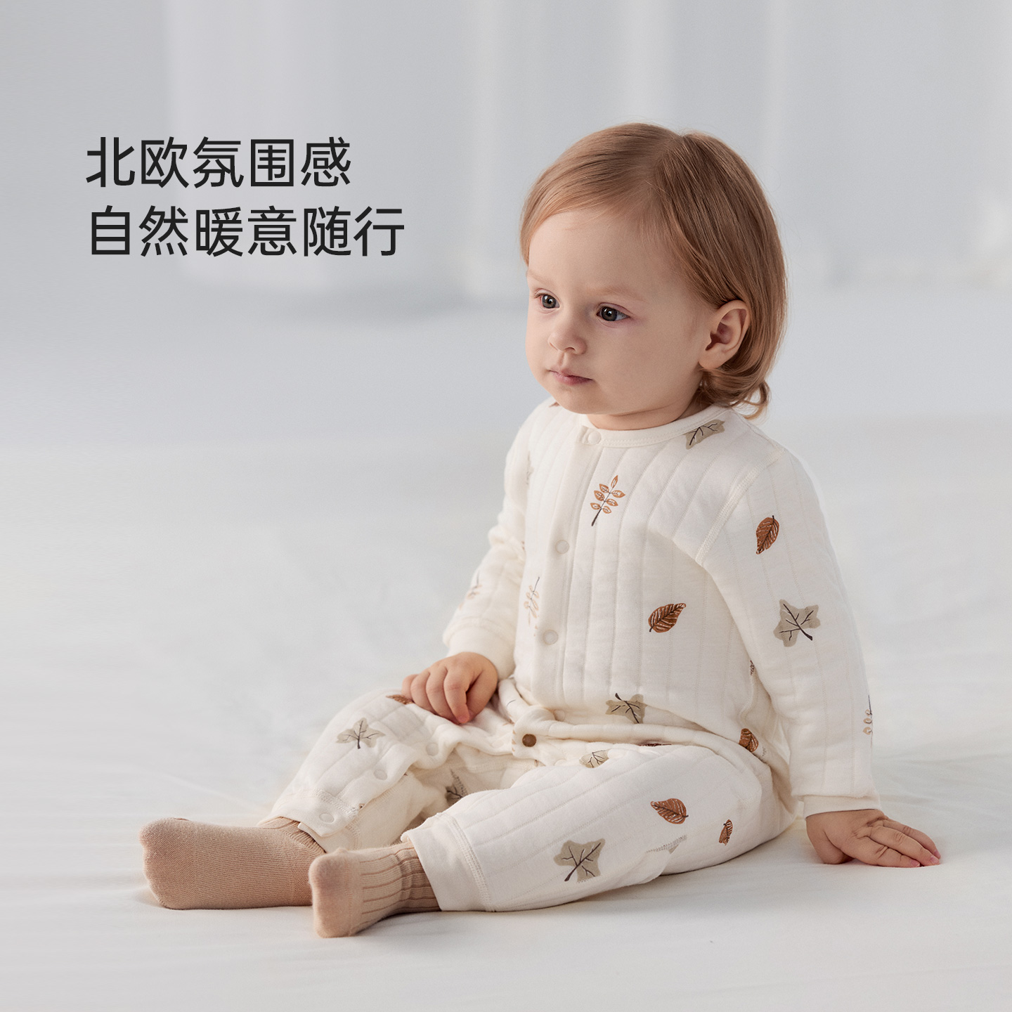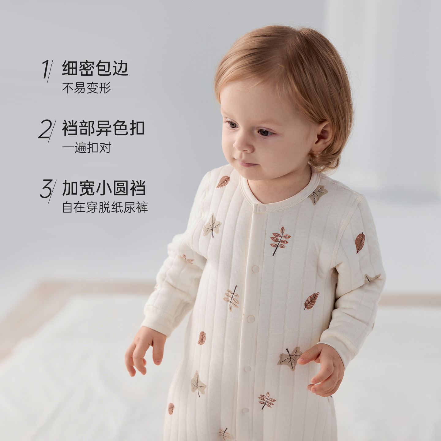 babylove婴儿连体衣秋冬棉莫薄夹棉保暖哈衣居家爬服简约宝宝衣服