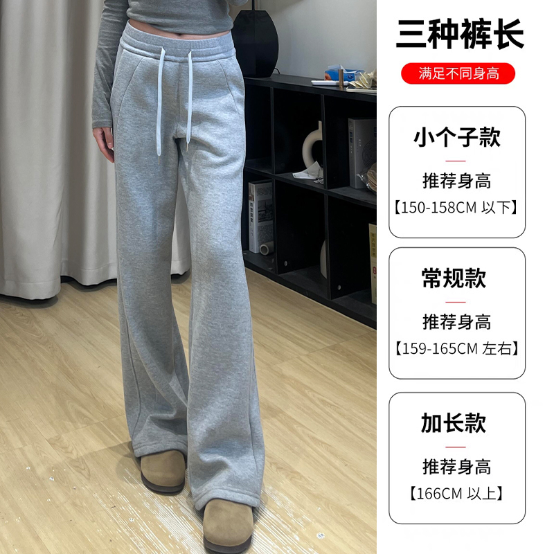 小个子秋冬加绒宽松休闲阔腿裤 灰色lulu同款 2025新款 女秋季 运动裤