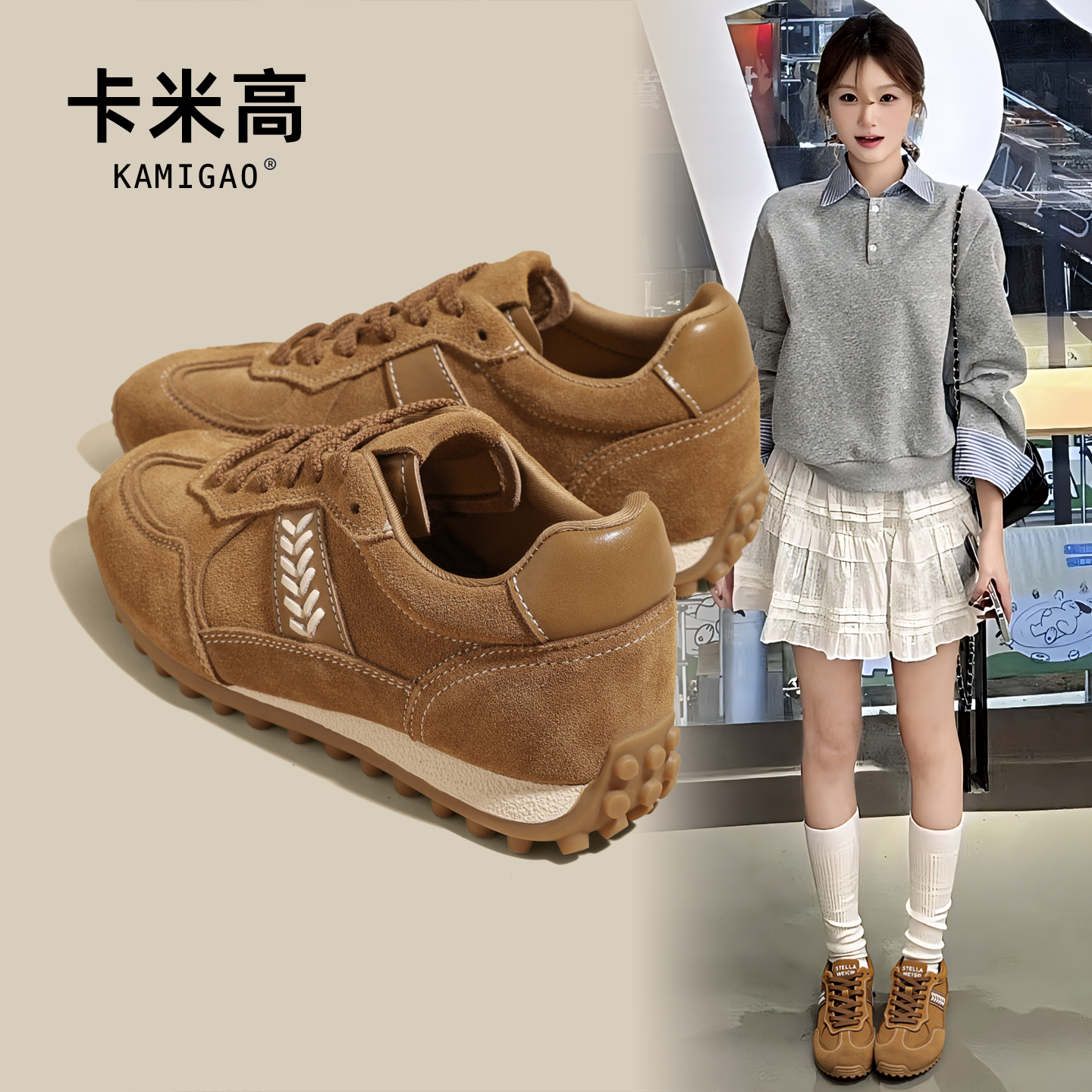 复古休闲运动潮鞋 秋冬厚底小个子经典 女2025新款 7cm内增高德训鞋