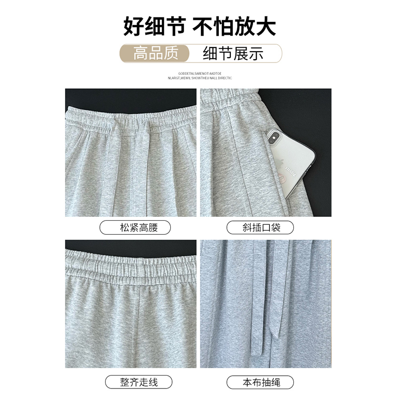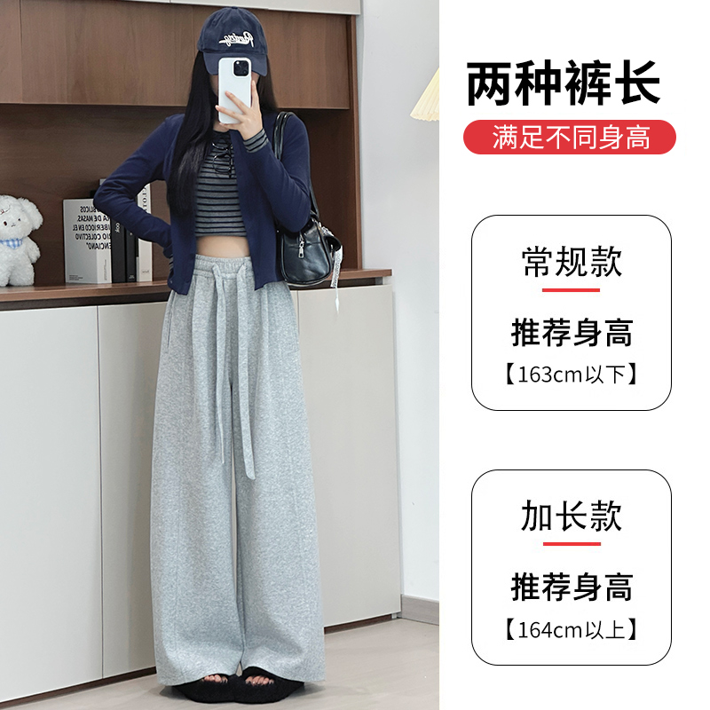 直筒阔腿裤 灰色运动裤 高腰显瘦垂感休闲宽松卫裤 2025新款 女秋冬季