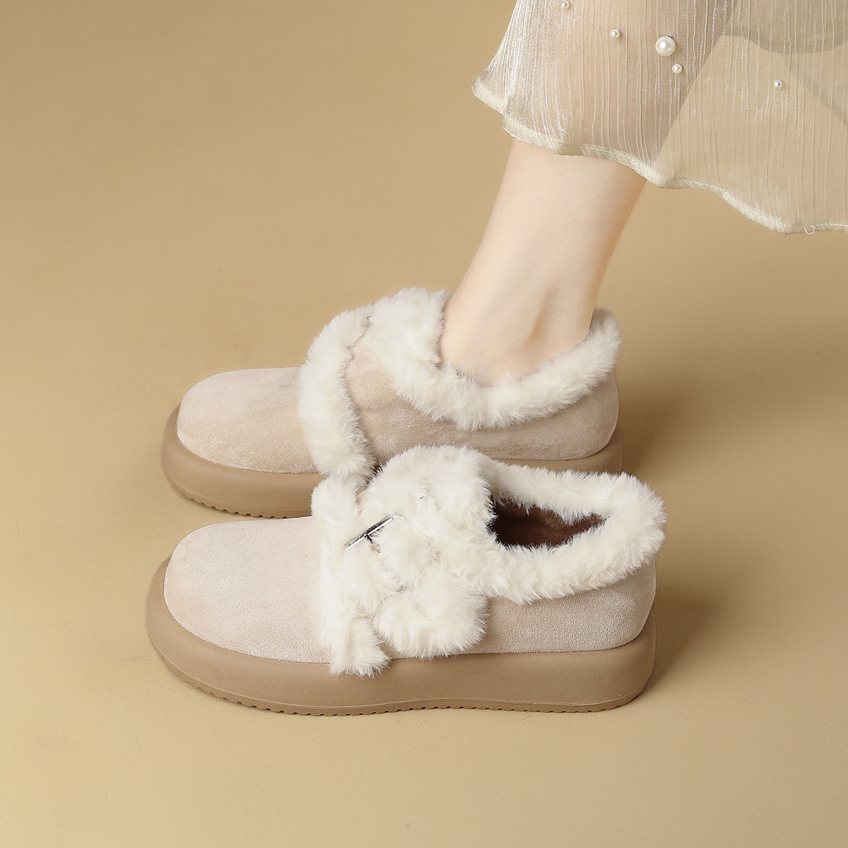 加绒加厚东北保暖女鞋 厚底勃肯鞋 天外穿毛毛棉鞋 冬季 子女2025新款